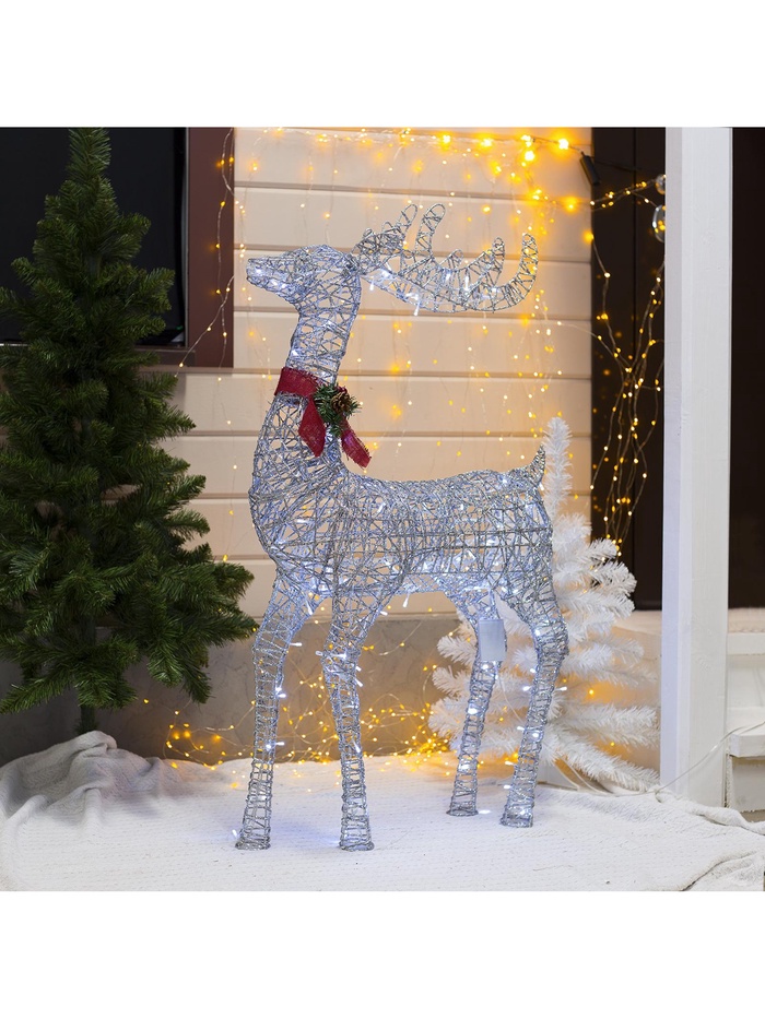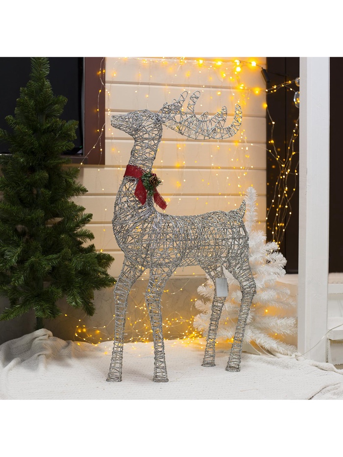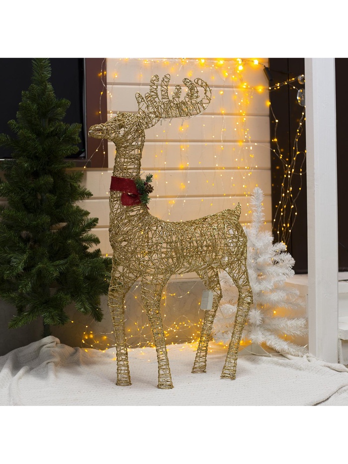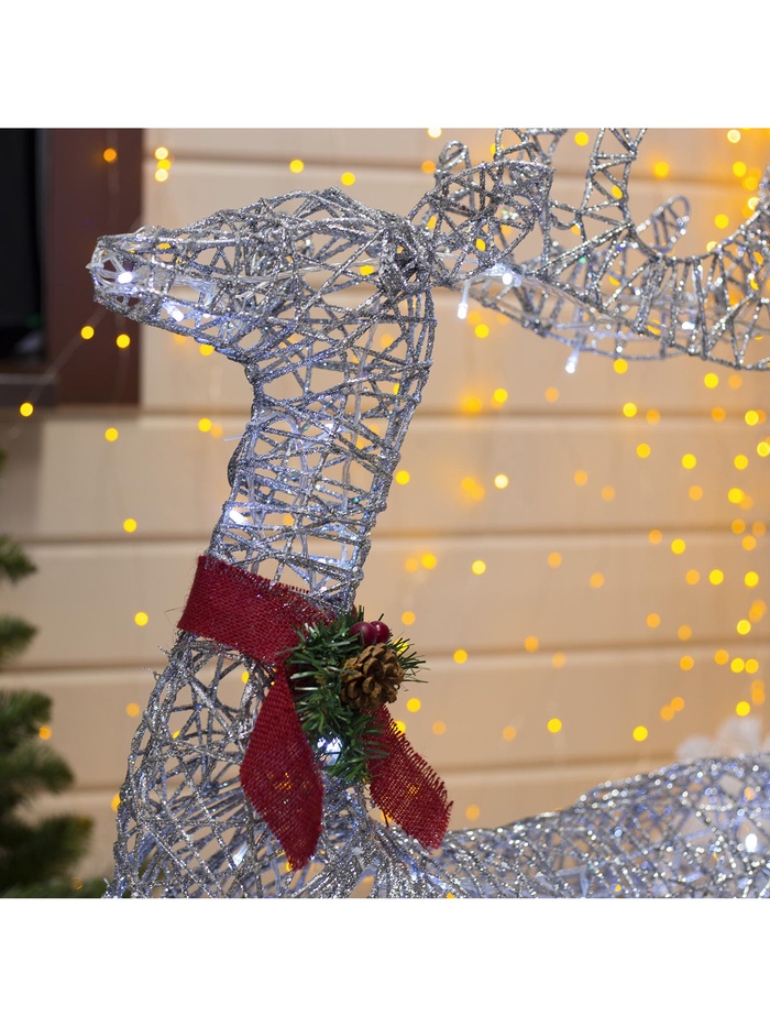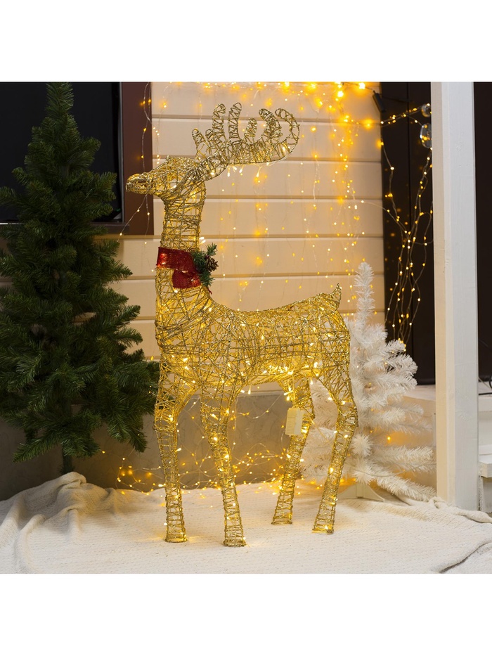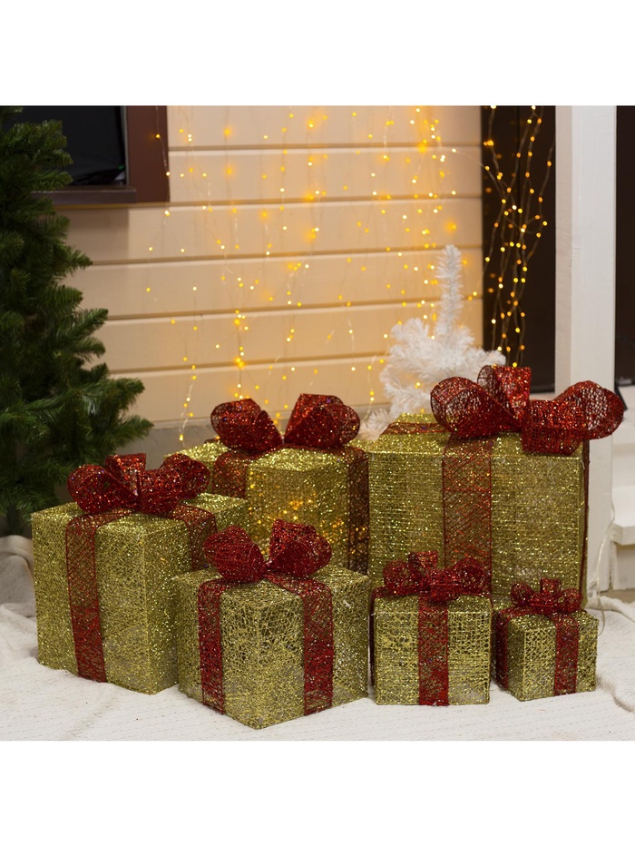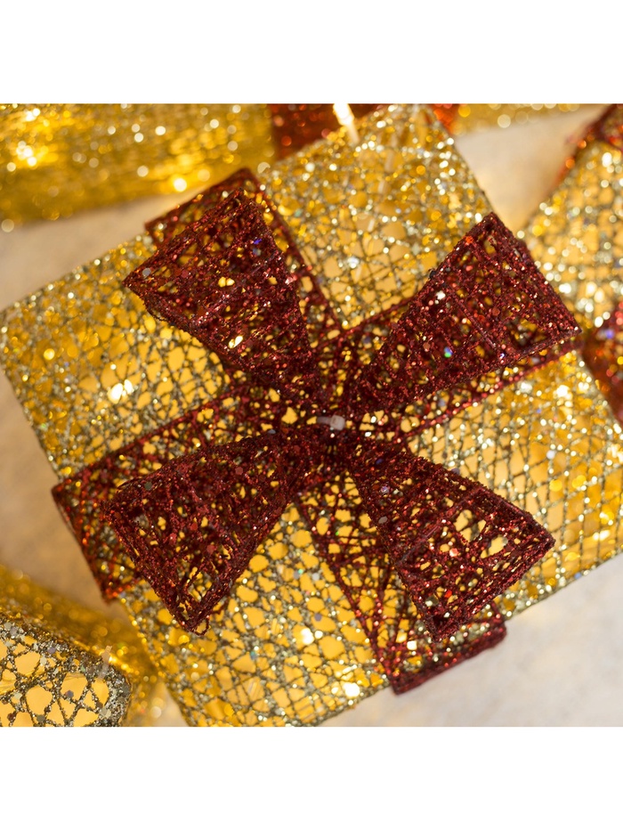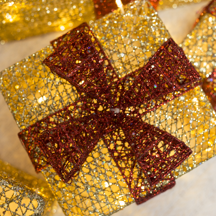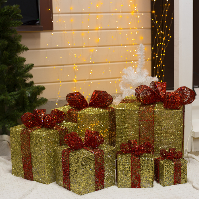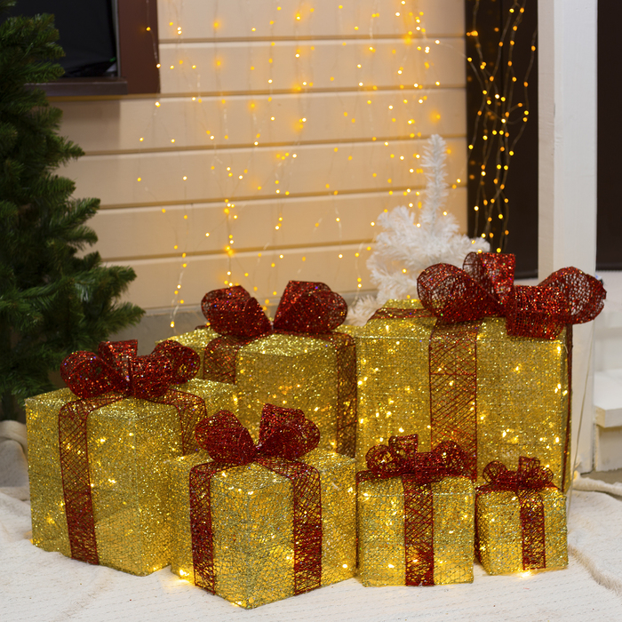 Светодиодная фигура «Подарки с красной лентой» 15, 20, 25, 30, 35, 40 см, текстиль, металл, 220 В, 8 режимов, свечение тёплое белое