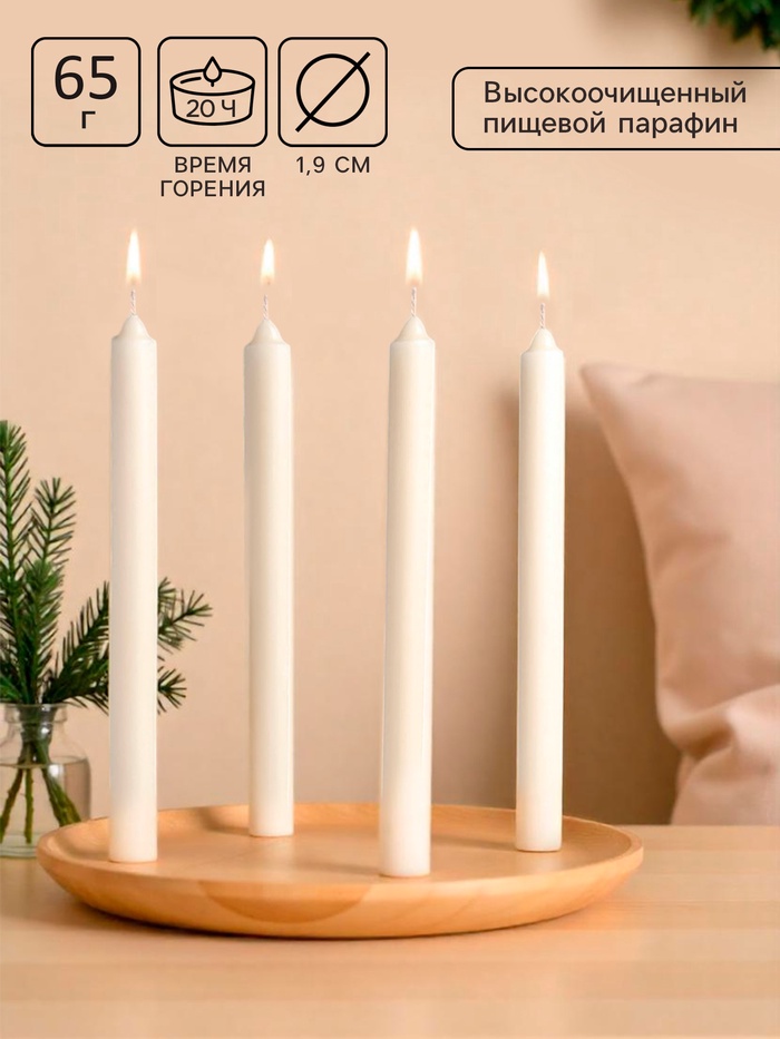 Набор хозяйственных свечей парафиновых, 1.9×24.5 см, 9 ч, 65 г, 4 шт. 4 фото