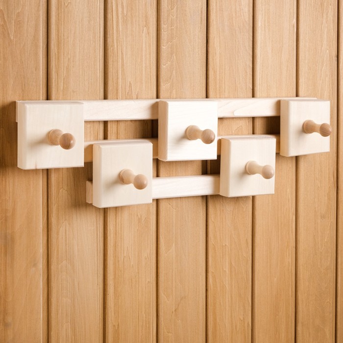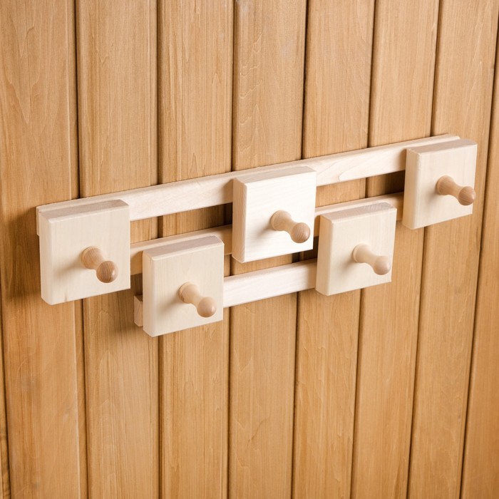 Вешалка для бани и сауны «Гармония», деревянная, настенная, 5 крючков, «Добропаровъ» 5 фото