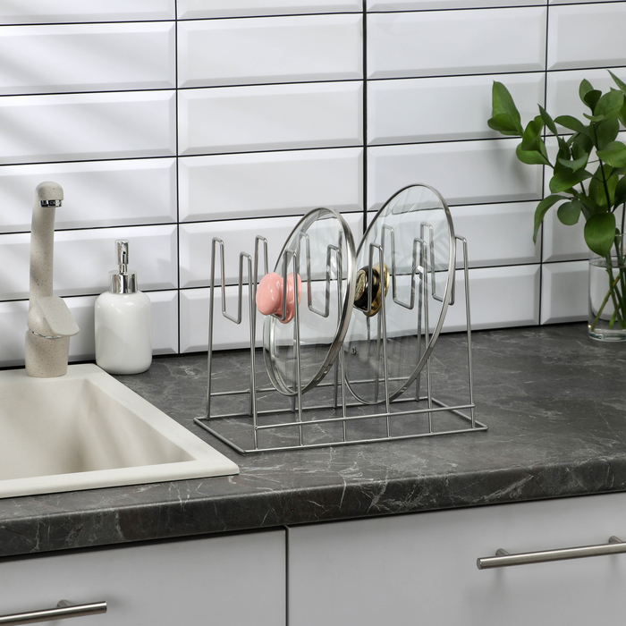 Подставка под крышки настольная, 5 предметов, 28×16×22 см, хром 3 фото