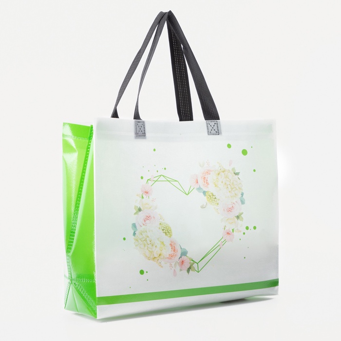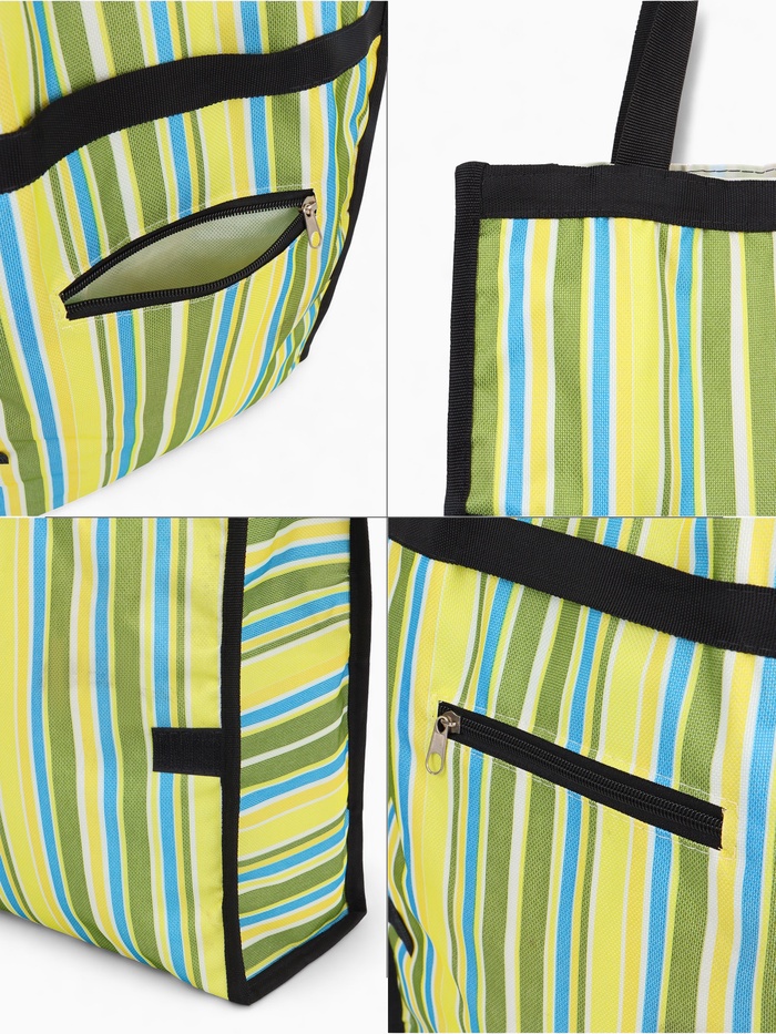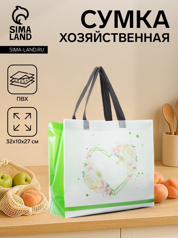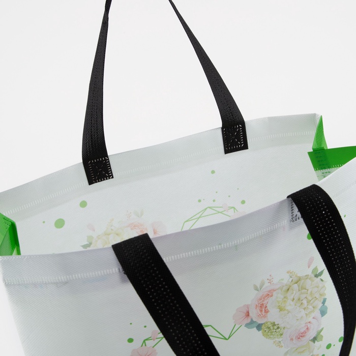 Сумка хозяйственная без застёжки, 32×10×27 см, белая/салатовая 4 фото