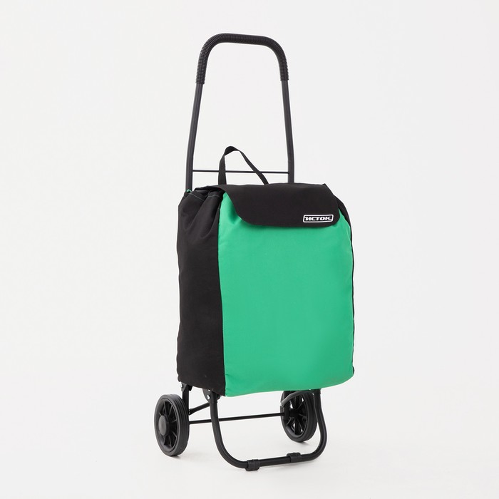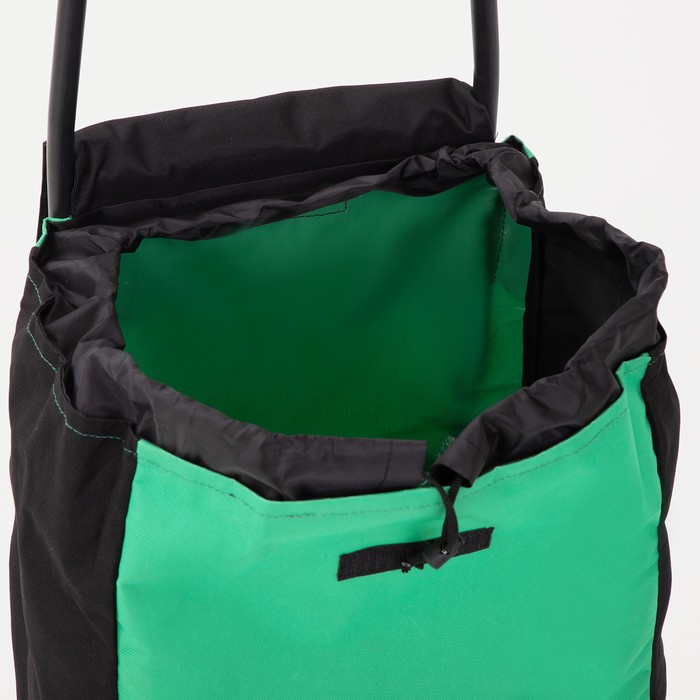 Сумка-тележка хозяйственная на шнуре, цвет чёрный/зелёный 5 фото