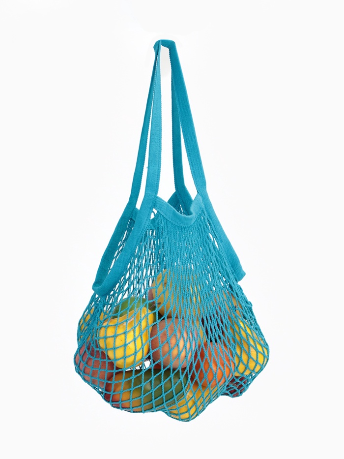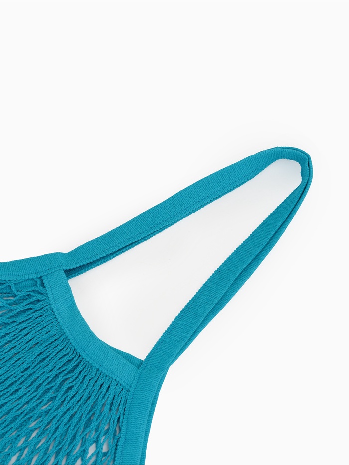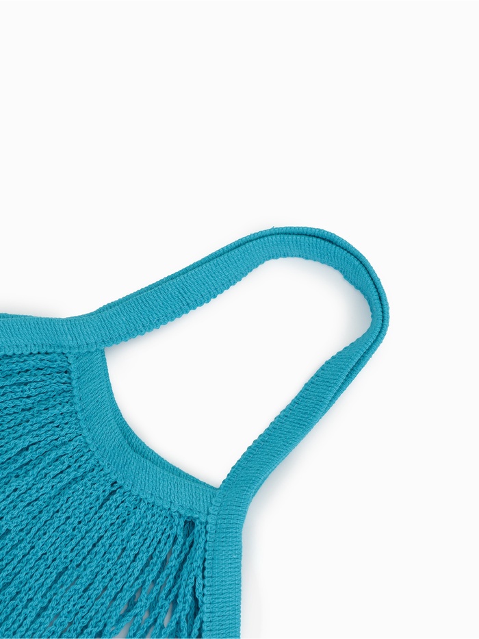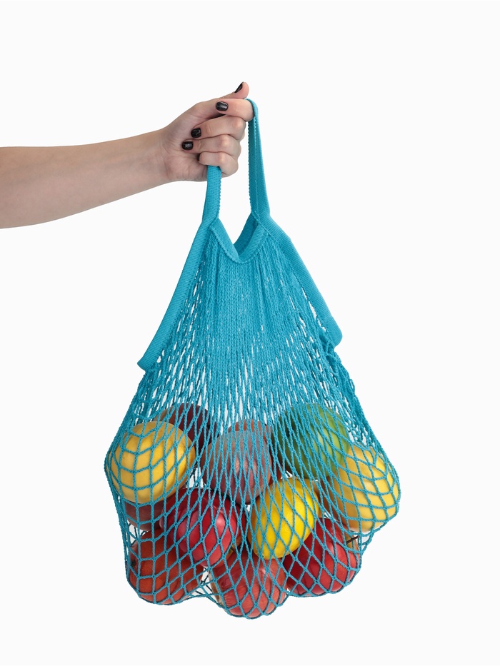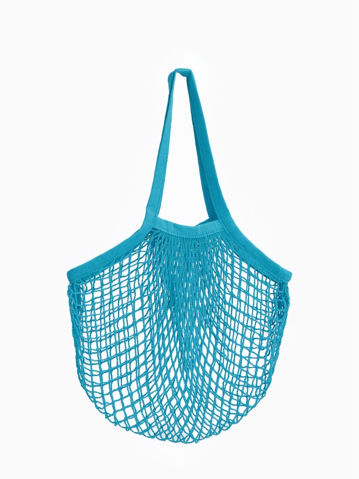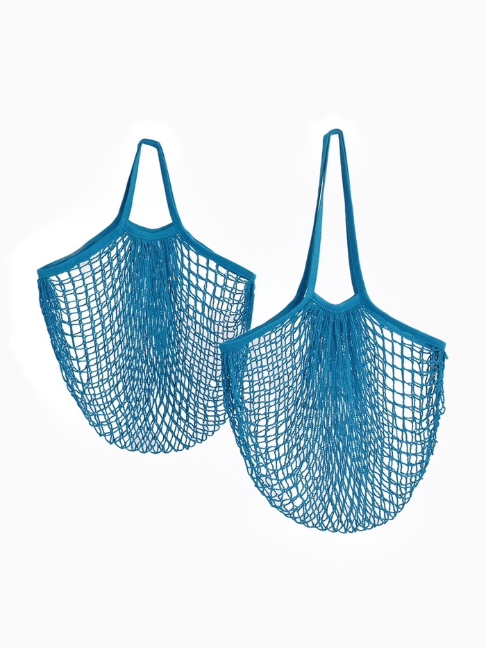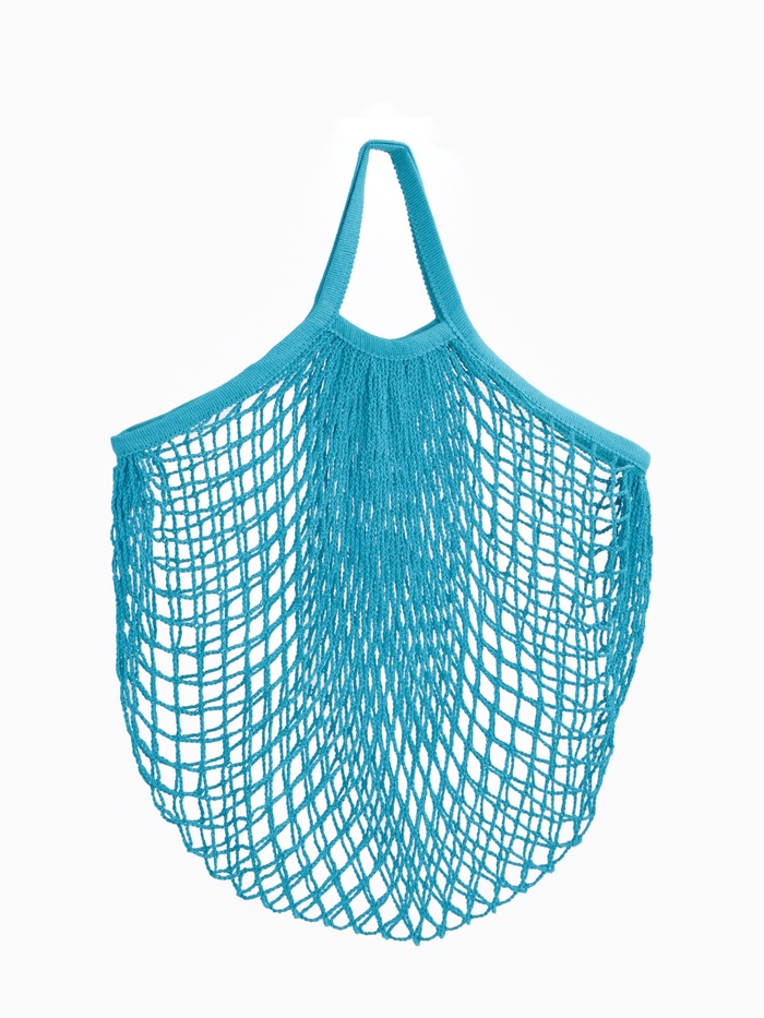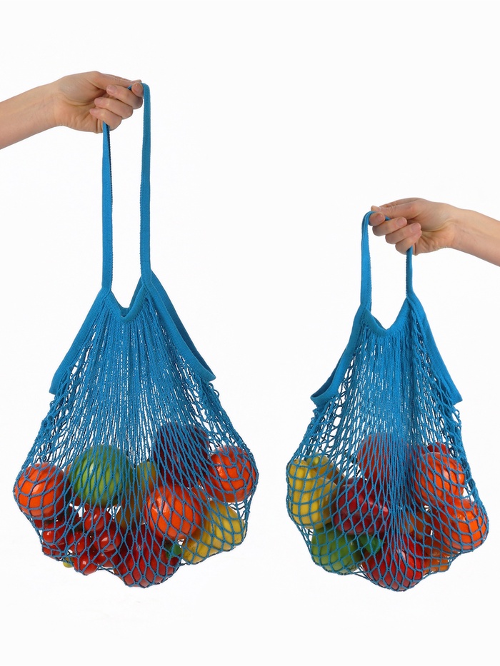 Сумка-авоська плетёная, клетка 1.5 см, синяя 10 фото