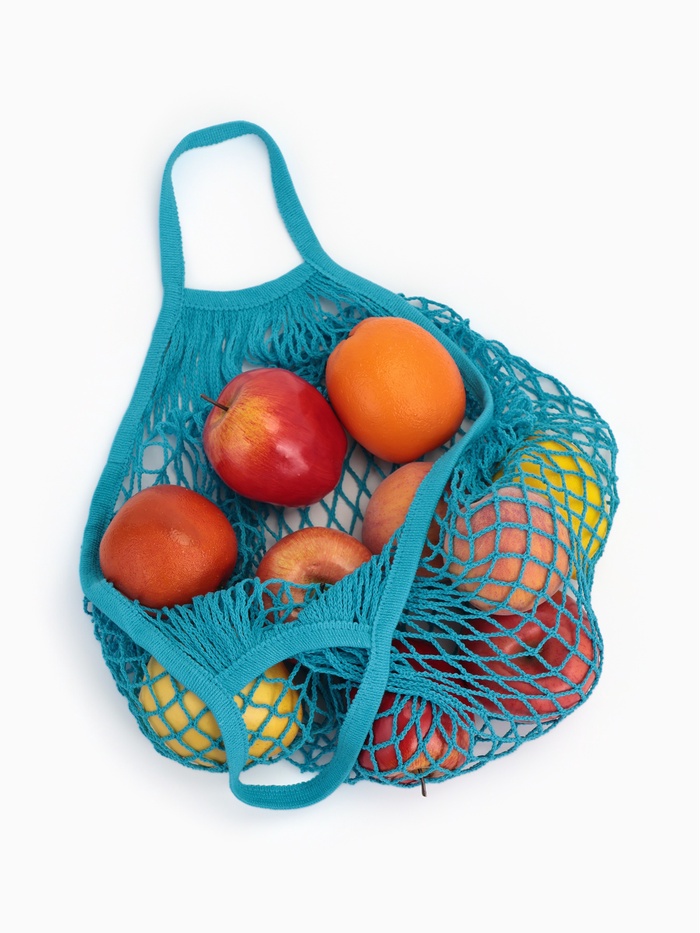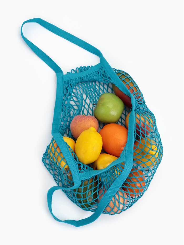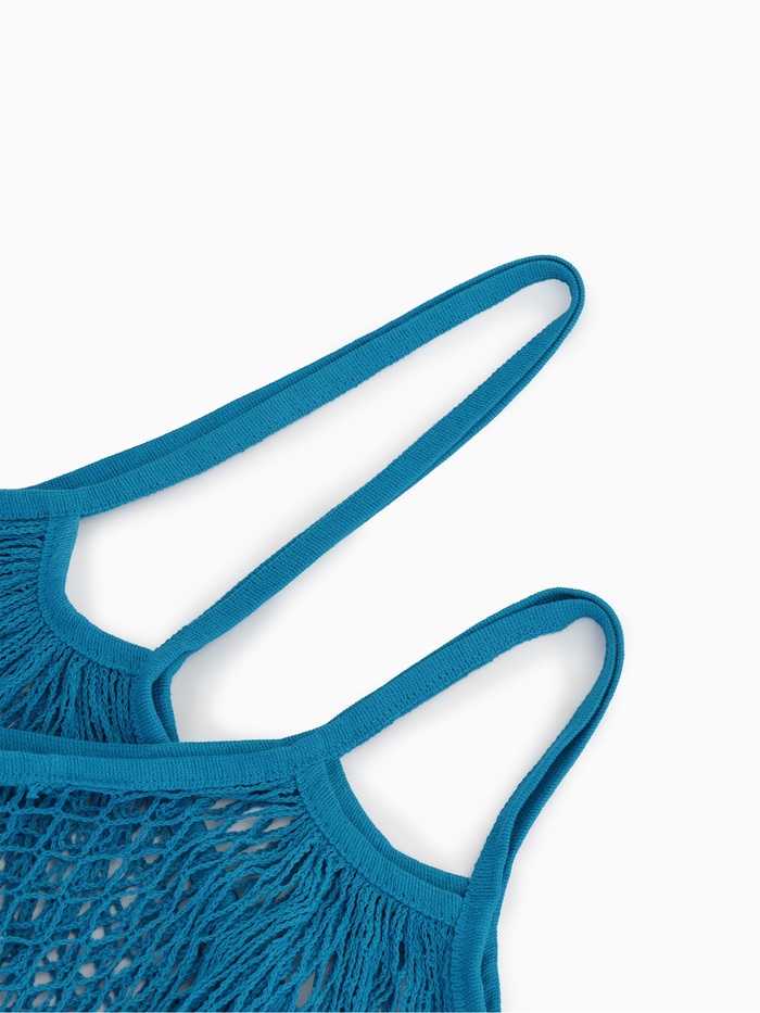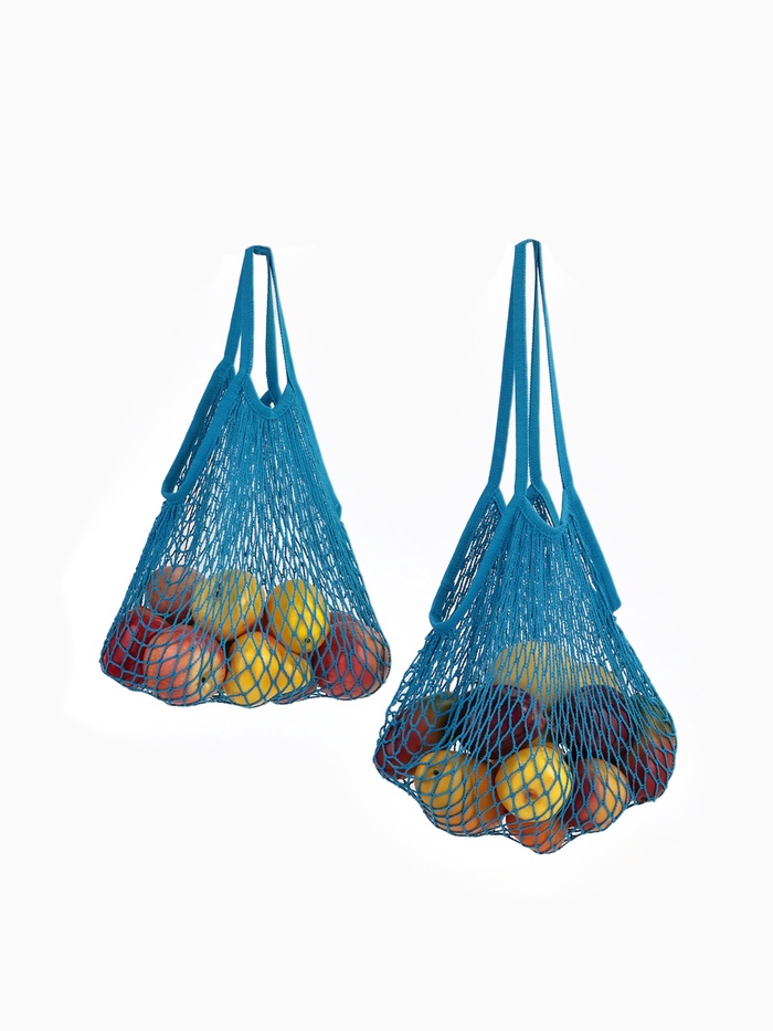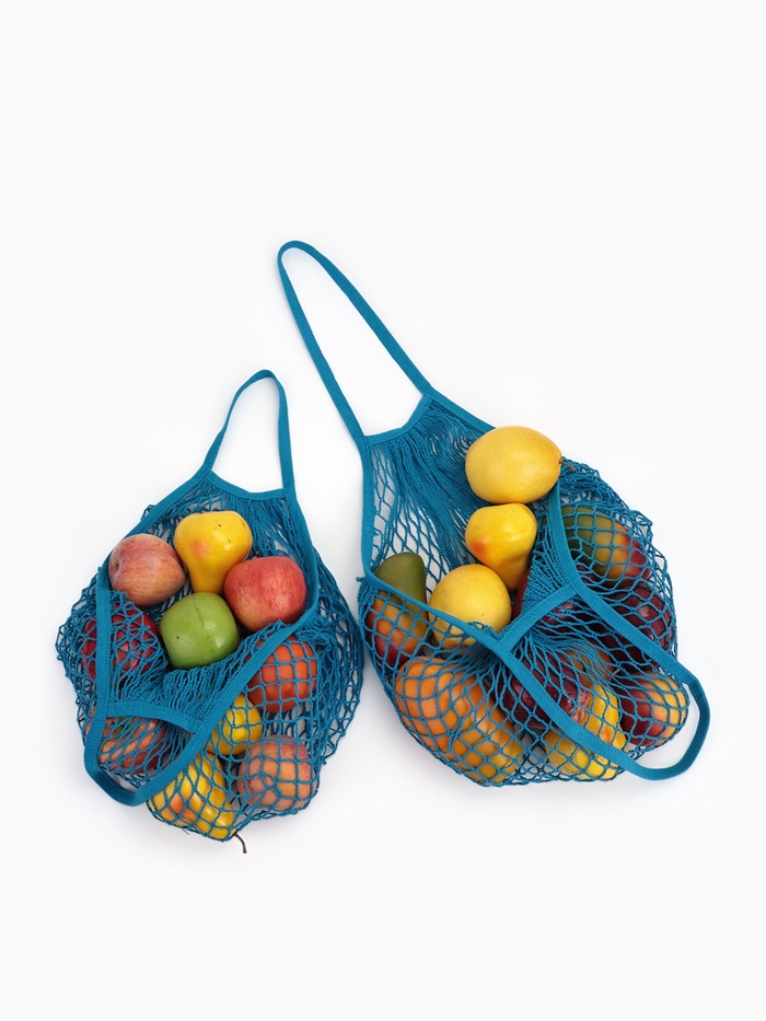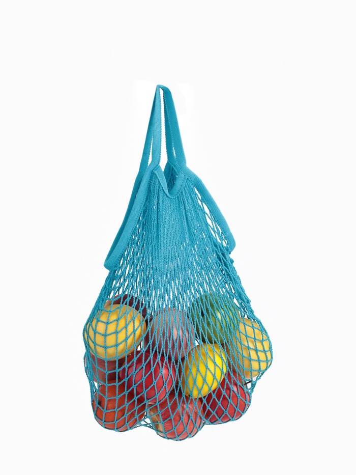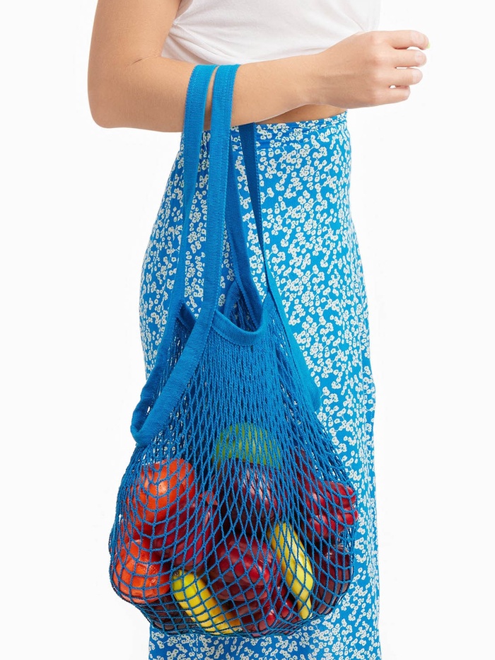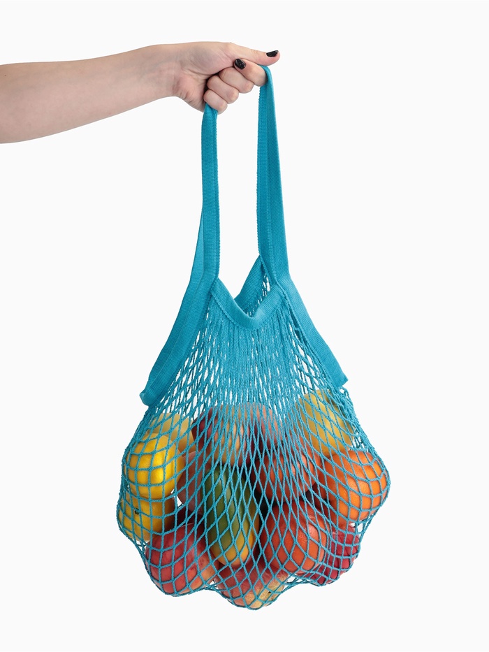 Сумка-авоська плетёная, клетка 1.5 см, синяя 10 фото