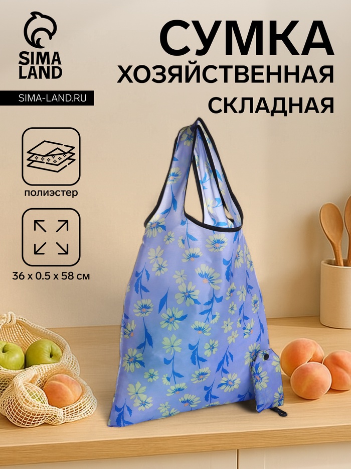 Сумка хозяйственная без застёжки, складная, цвет синий 4 фото