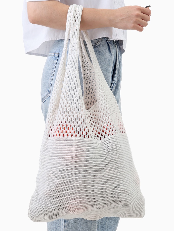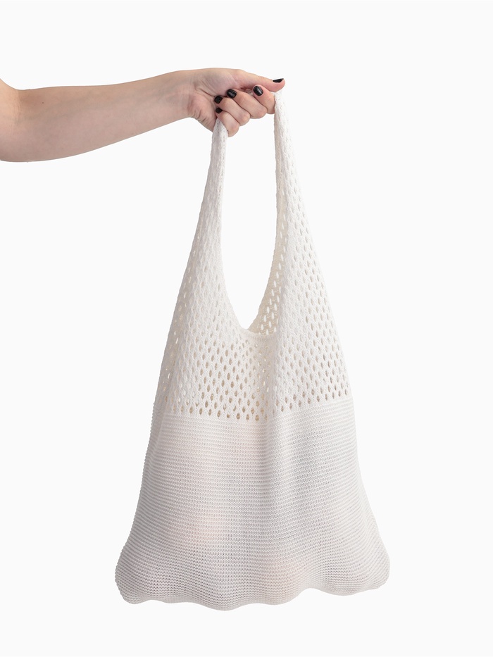 Сумка-авоська плетёная, клетка 0.5 см, белая 10 фото
