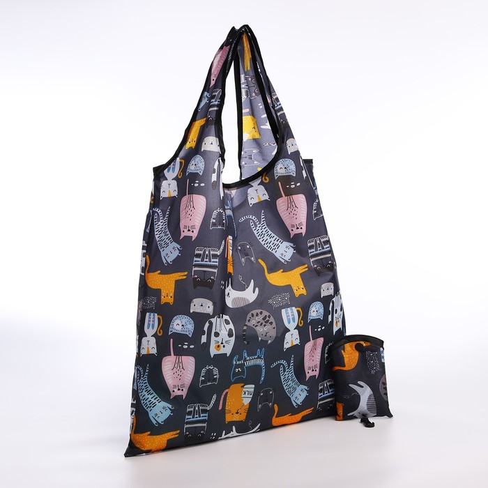Сумка хозяйственная на кнопке, складная, 42×0.5×65 см, чёрная 5 фото