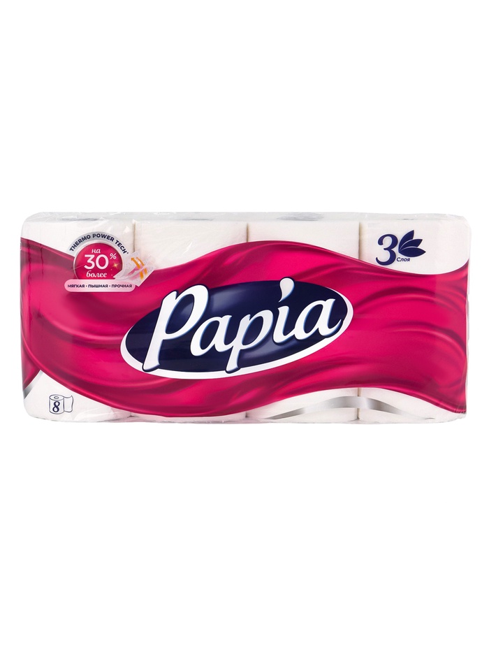 Туалетная бумага белая «Papia» 3 слоя, 12 рулонов