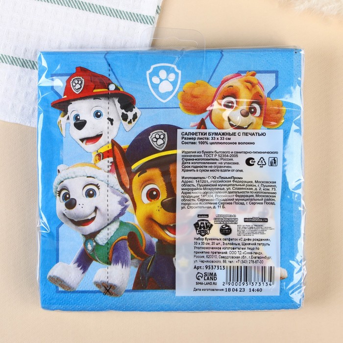 Салфетки бумажные 25×25 см «Комиксы», набор 20 шт.