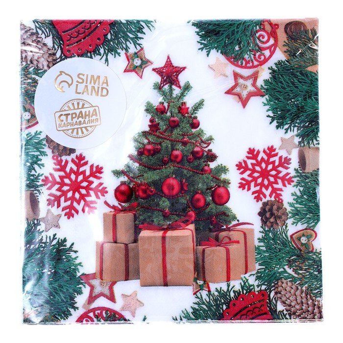 Салфетки новогодние бумажные «Ёлочные игрушки», 33×33 см, набор 20 шт.
