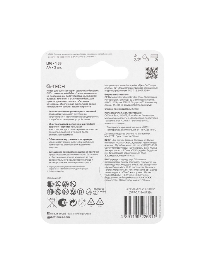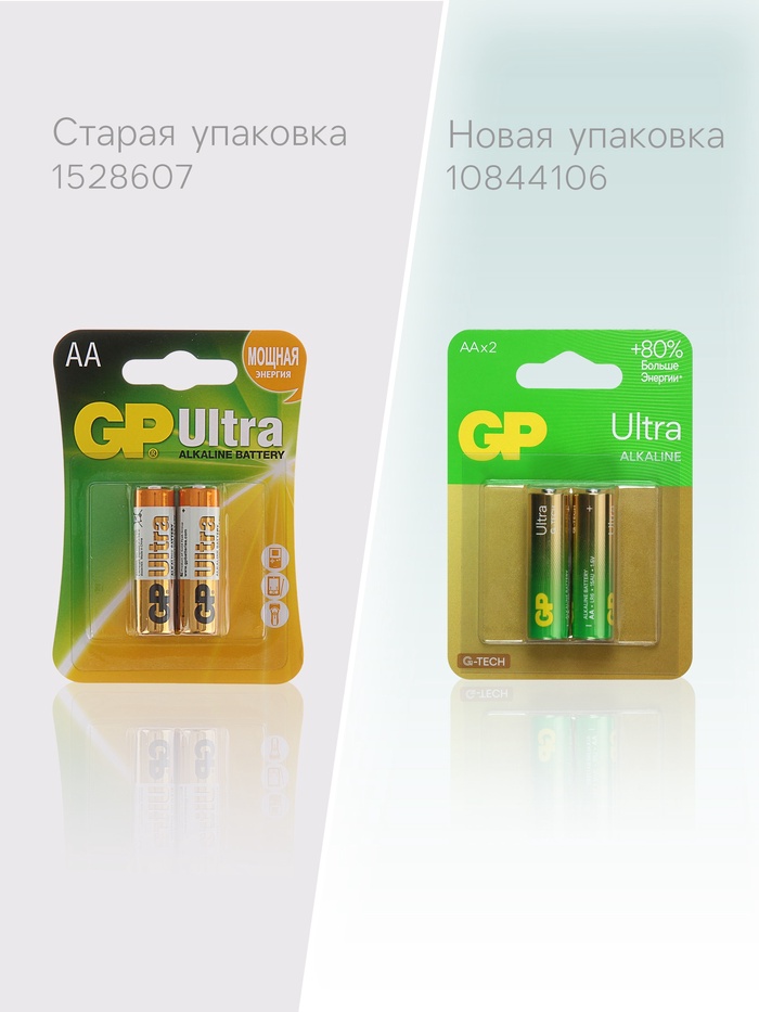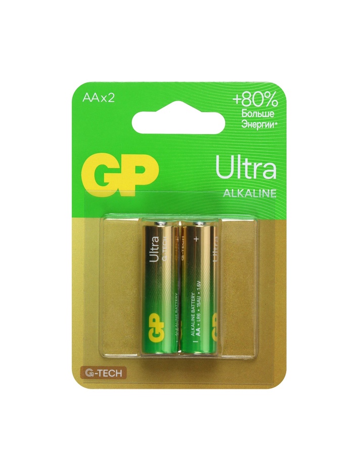 Батарейка алкалиновая GP Ultra, AA, LR6-2BL, 1.5 В, блистер, 2 шт.