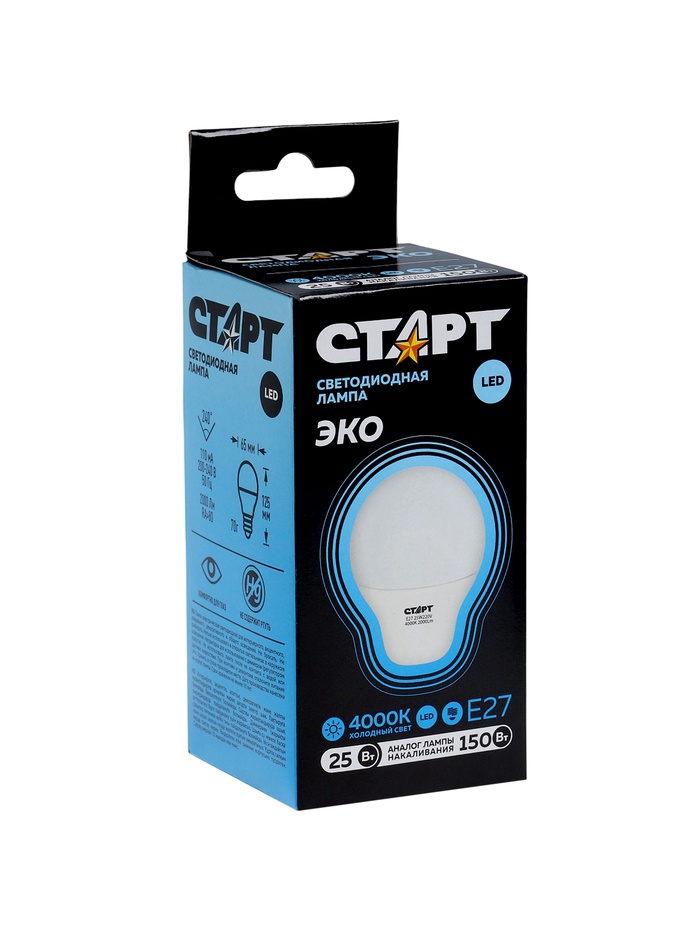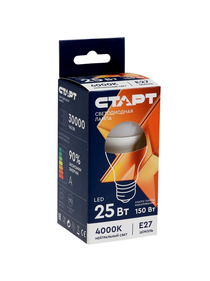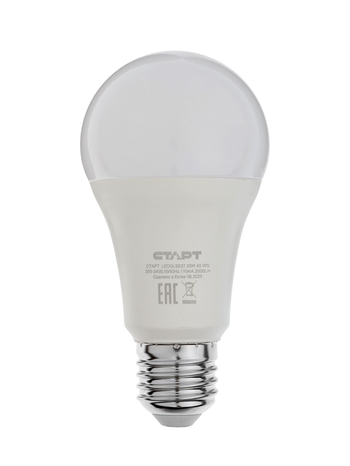 Лампа светодиодная СТАРТ, 25 Вт, Е27, А60, 4000К, 2000 Лм, свечение нейтральное белое
