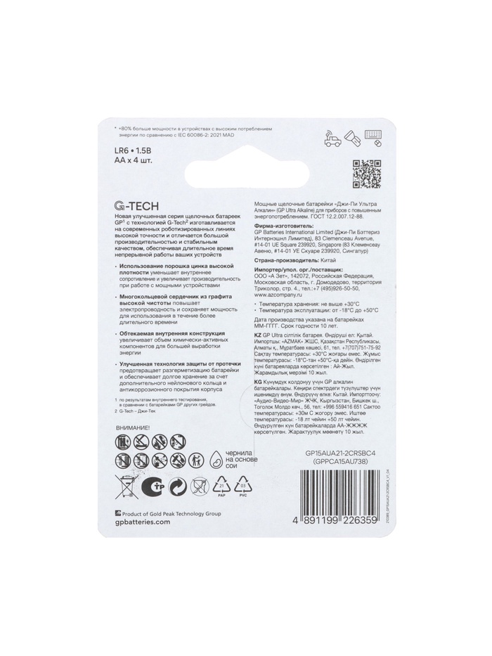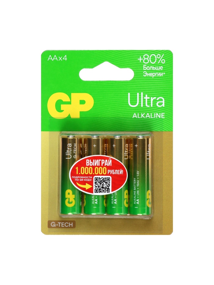 Батарейка алкалиновая GP Ultra, AA, LR6-4BL, 1.5 В, блистер, 4 шт.