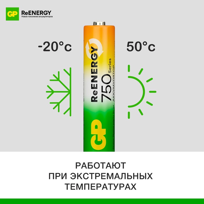 Аккумулятор GP, Ni-Mh, AAA, HR03-2BL, 1.2 В, 750 мАч, блистер, 2 шт.