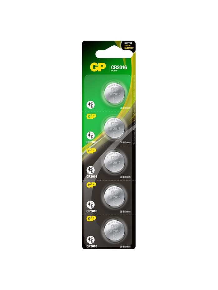 Батарейка литиевая GP, CR2016-5BL, 3 В, блистер, 5 шт.