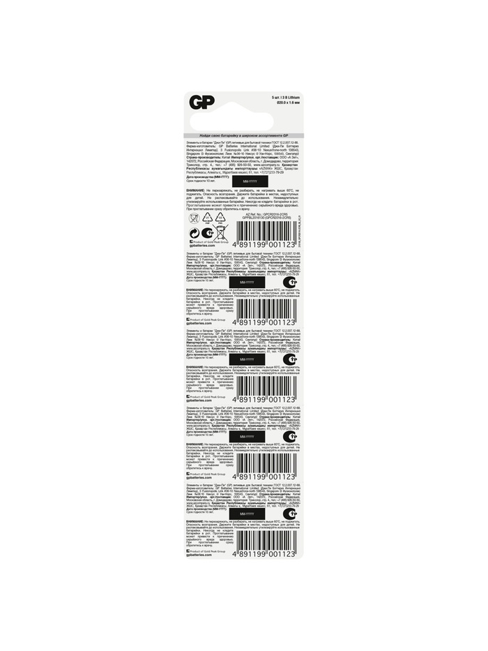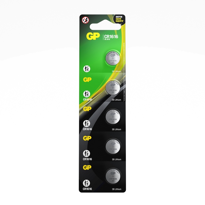 Батарейка литиевая GP, CR1616-5BL, 3 В, блистер, 5 шт.