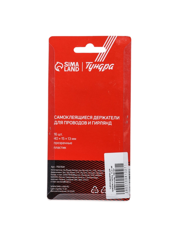 Держатель самоклеящийся для проводов ТУНДРА krep, d=20 мм, 60×20×40 мм, белый, 4 шт.