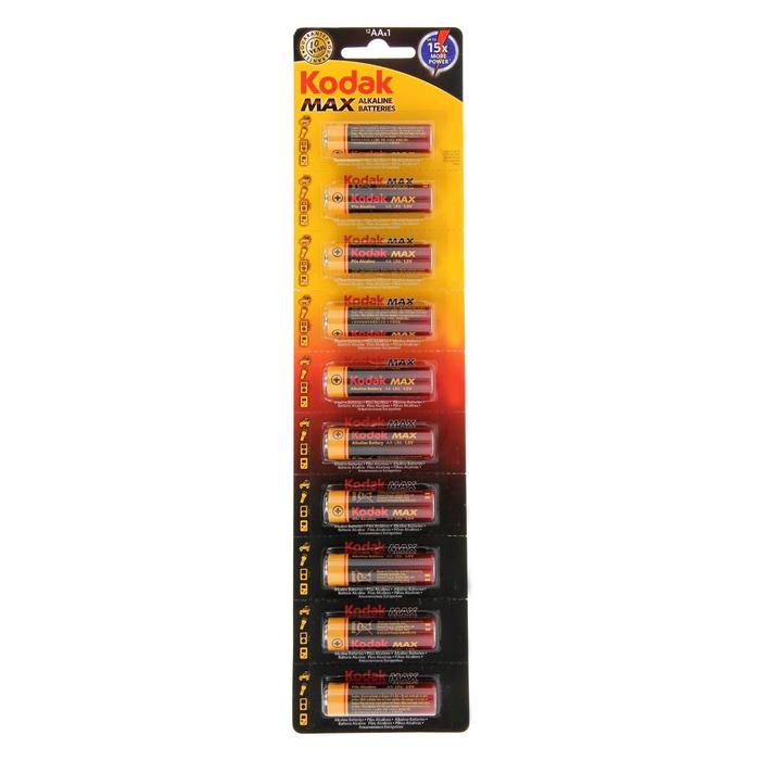 Батарейка алкалиновая Kodak Max, AA, LR6-10BL, 1.5В, отрывной блистер, 10 шт.