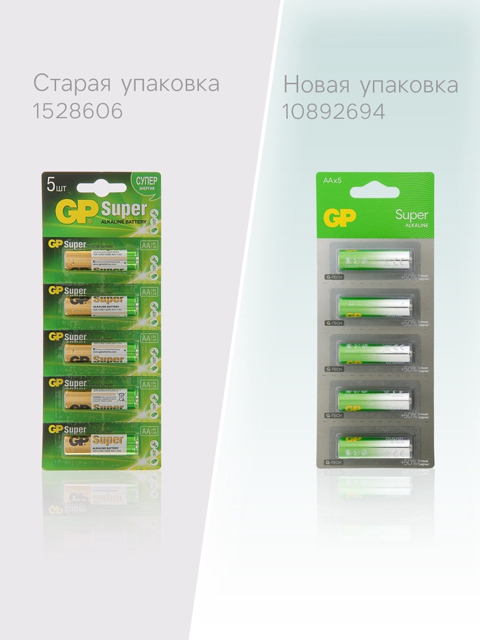 Батарейка алкалиновая GP Super, AA, LR6-5BL, 1.5 В, технология G-Tech, блистер, 5 шт. 3 фото