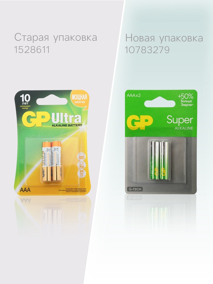 Батарейка алкалиновая GP Super, AAA, LR03-2BL, 1.5 В, блистер, 2 шт. 8 фото
