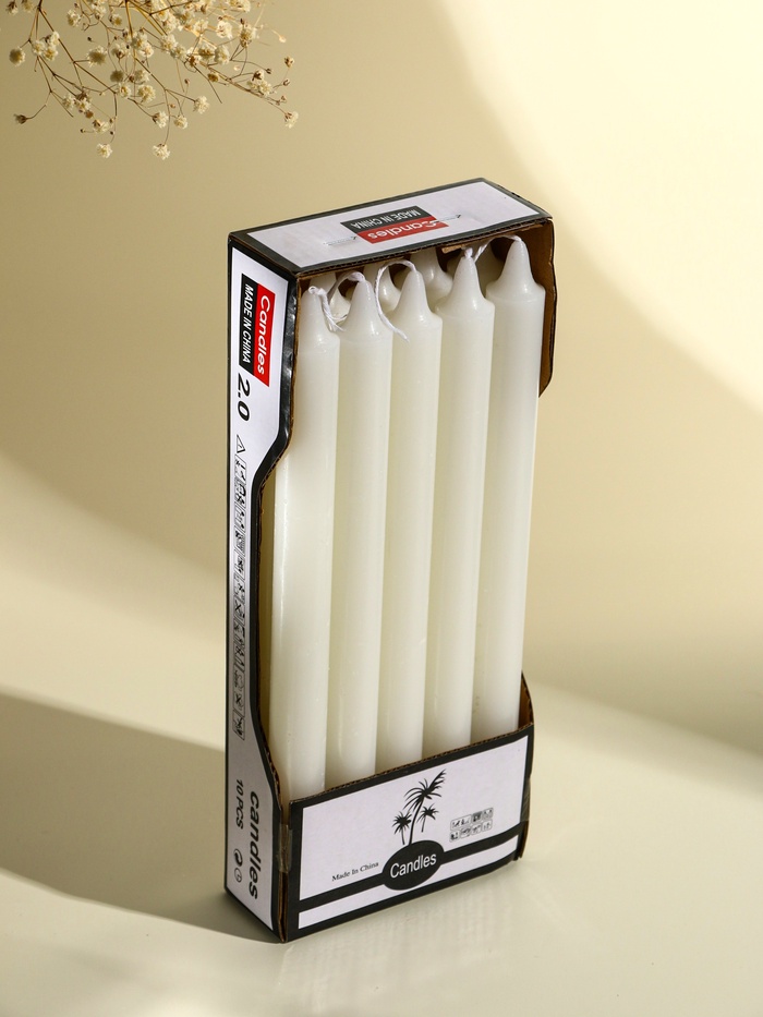 Свечи хозяйственные столовые «Белые», набор 10 шт., d=2 см, h=23 см, 10×4.5×24.5 см 4 фото