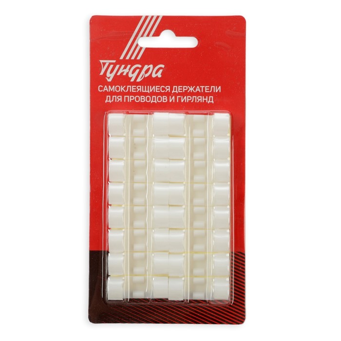 Держатель самоклеящийся для проводов и гирлянд ТУНДРА, 20 шт., белый 10 фото