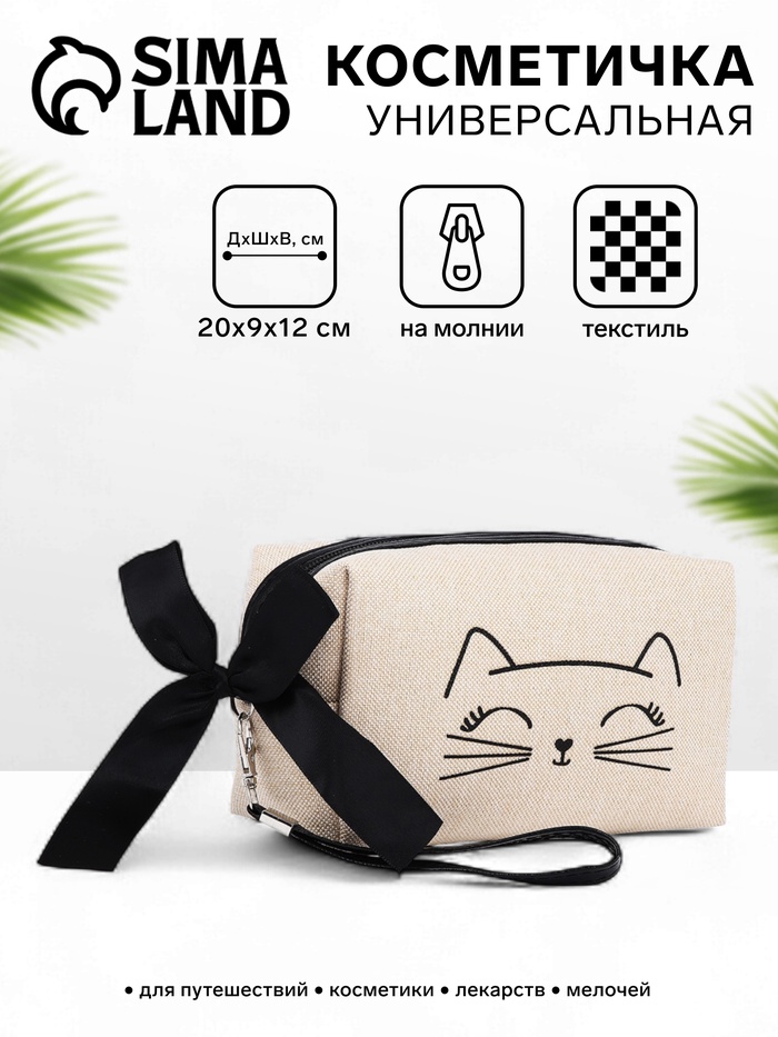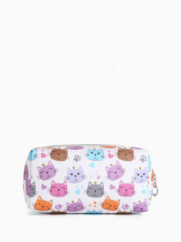 Косметичка женская на молнии объёмная, маленькая, с принтом, белая