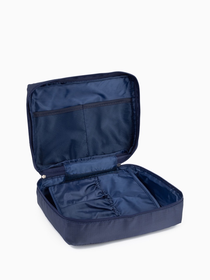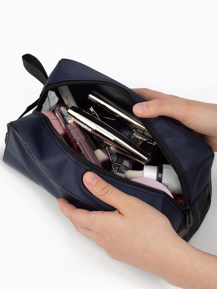 Косметичка дорожная на молнии с ручкой, объёмная, большая, тёмно-синяя