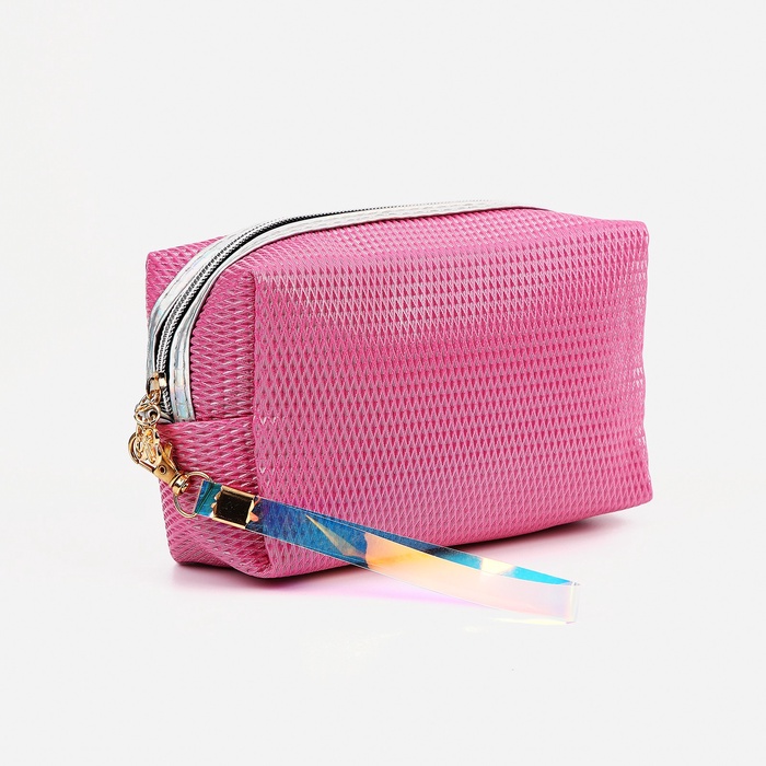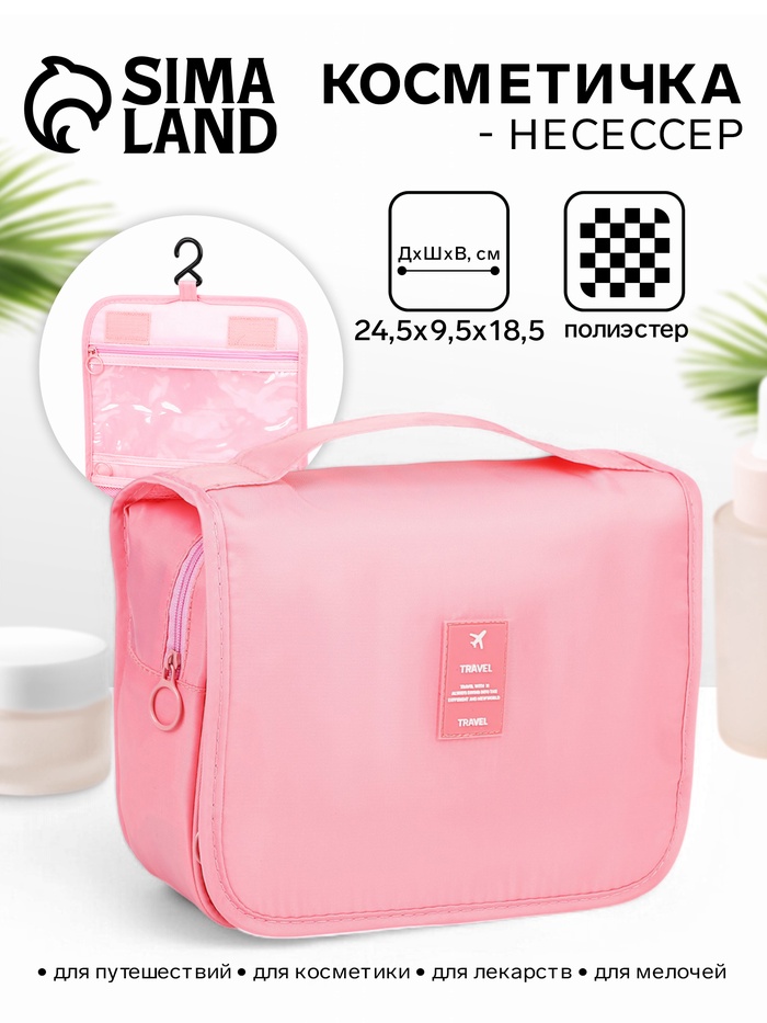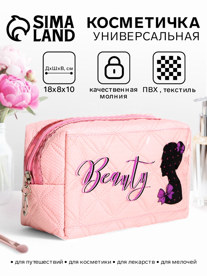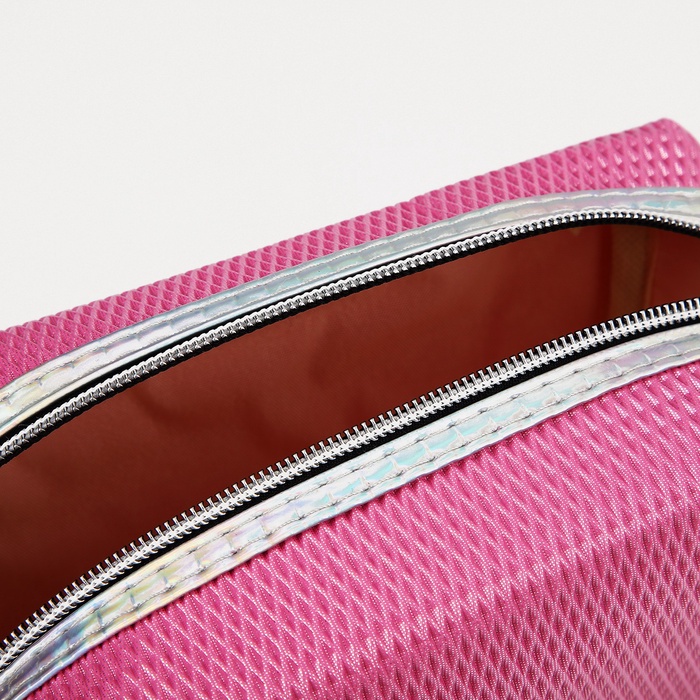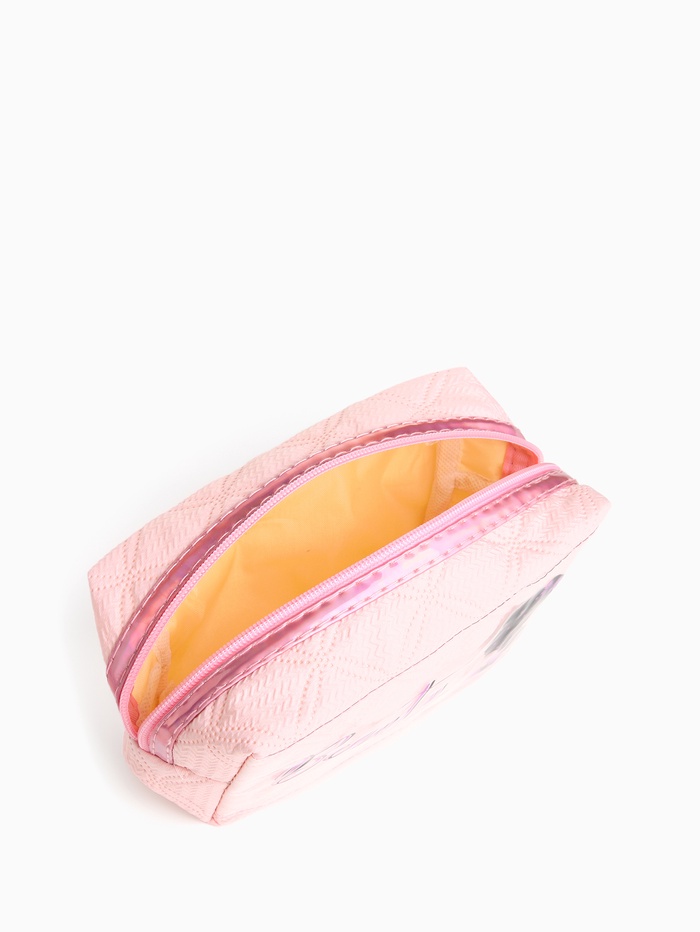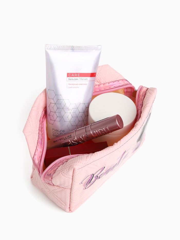 Косметичка женская на молнии, объёмная, маленькая, с принтом, нежно-розовая