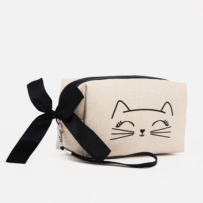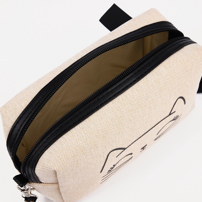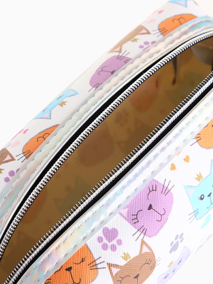 Косметичка на молнии объёмная, с подкладкой, маленькая, с принтом, белая