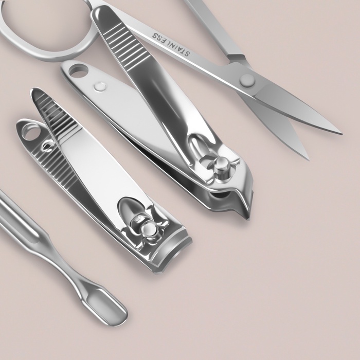 Набор маникюрный, 6 предметов, в футляре на молнии, чёрный