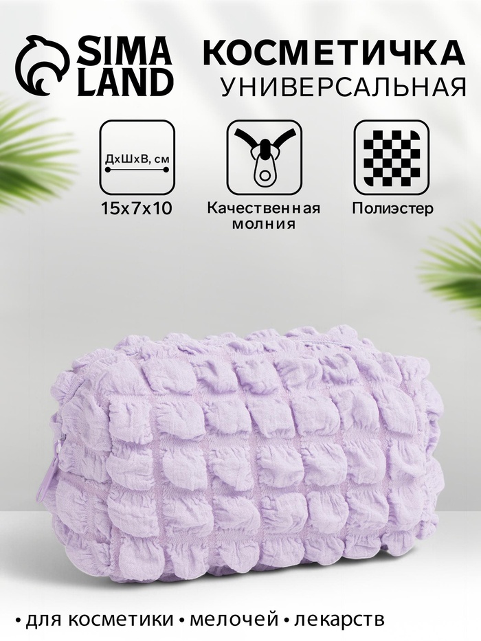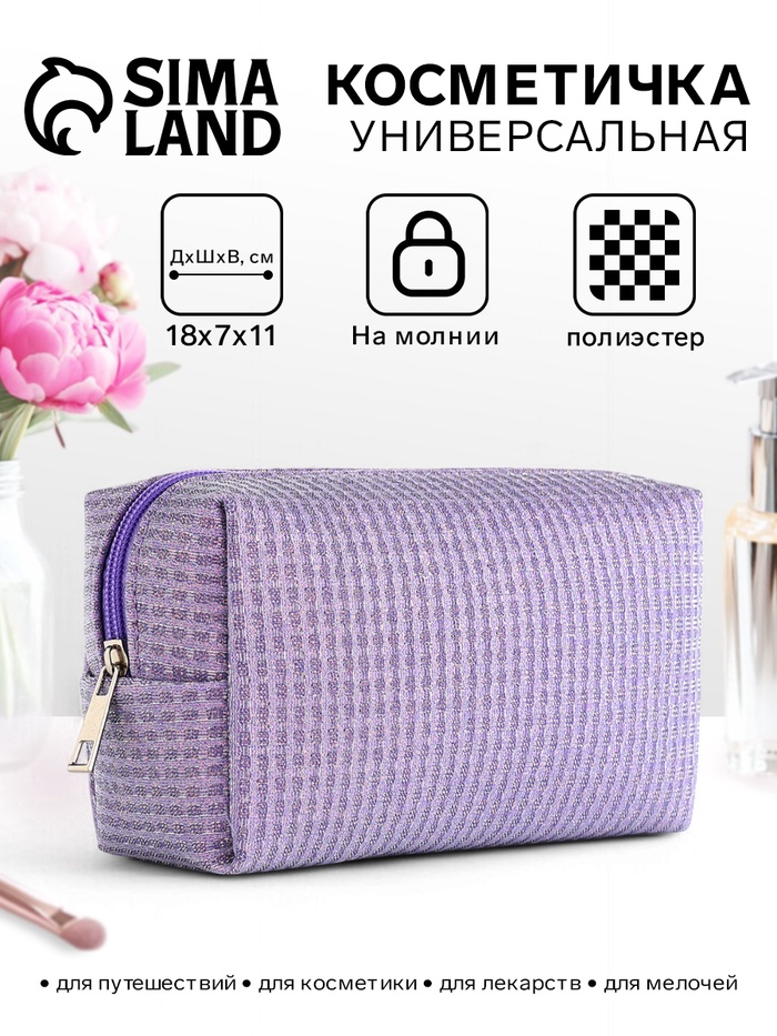 Косметичка на молнии женская, с подкладкой, маленькая, сиреневая
