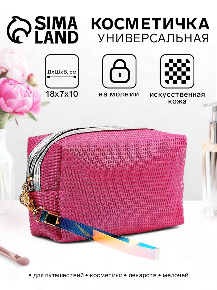 Косметичка женская на молнии объёмная, маленькая, с принтом, белая/розовая
