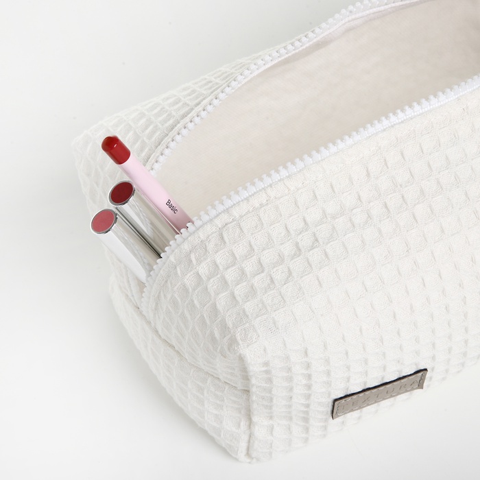 Косметичка женская на молнии TEXTURA, объёмная, большая, мягкая, белая
