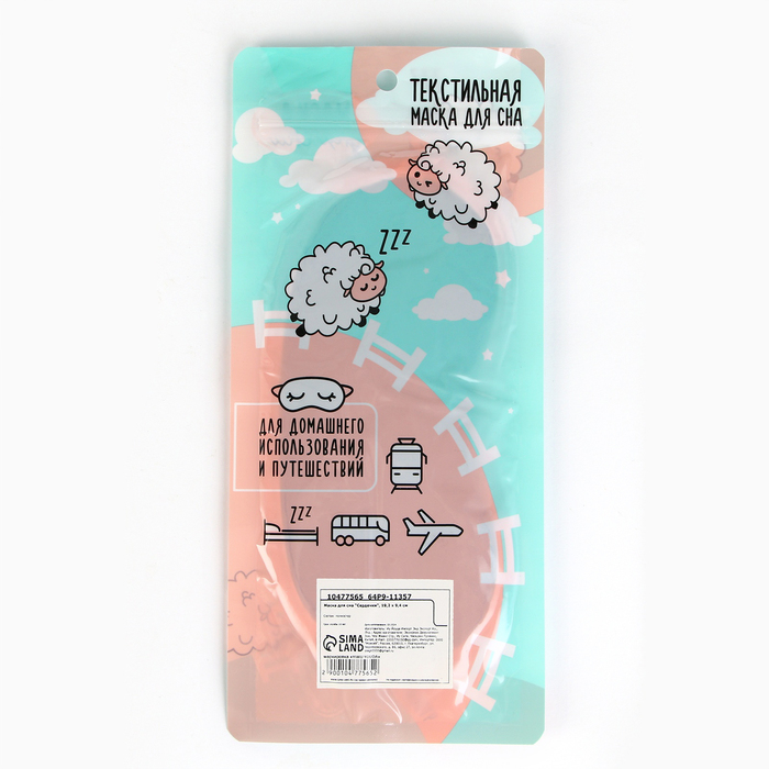 Маска для сна «Сердечки», 19.2×9.4 см