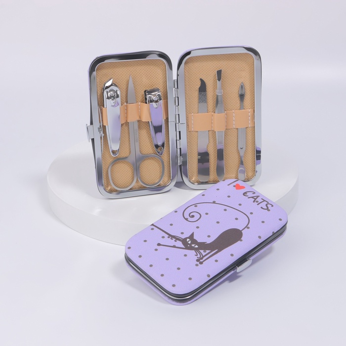 Набор маникюрный, 6 предметов, в футляре, синий
