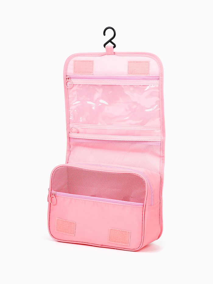 Косметичка-мешок дорожная на завязке, с кошельком, розовая