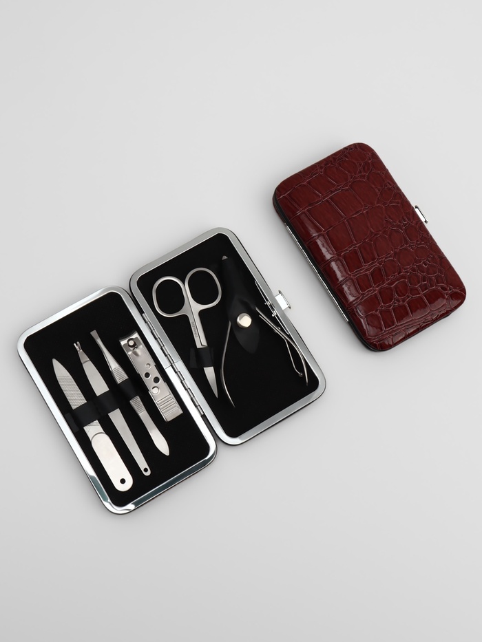 Набор маникюрный «Рептилия», 6 предметов, в футляре, коричневый