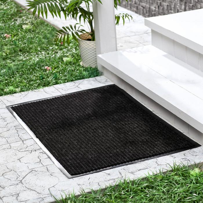 Коврик придверный влаговпитывающий, ребристый, «Стандарт», 60×90 см, чёрный