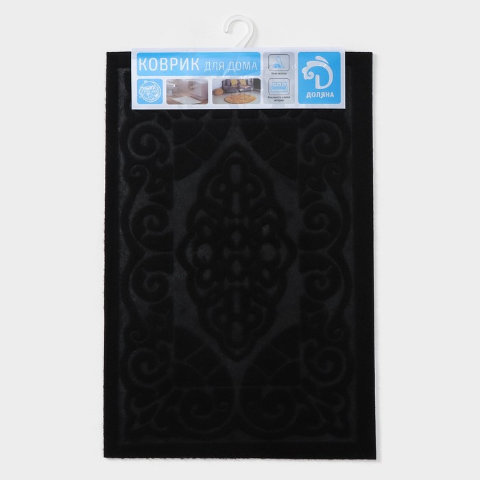 Коврик влаговпитывающий придверный Доляна «Восточная сказка», без окантовки, 38×58 см, чёрный