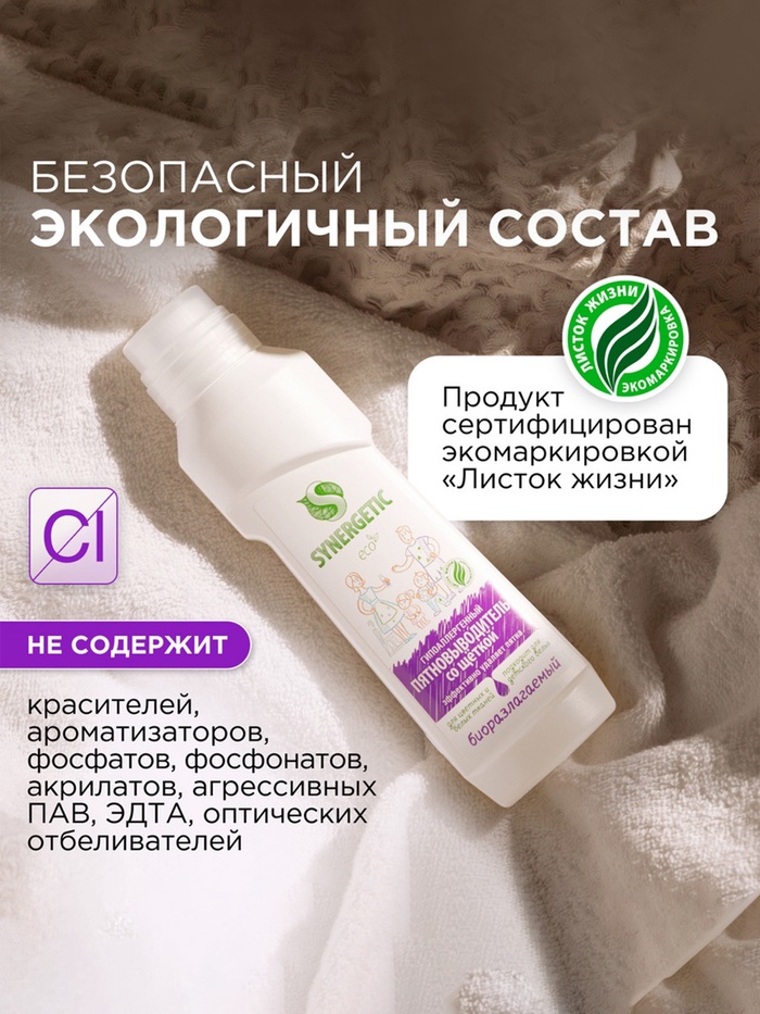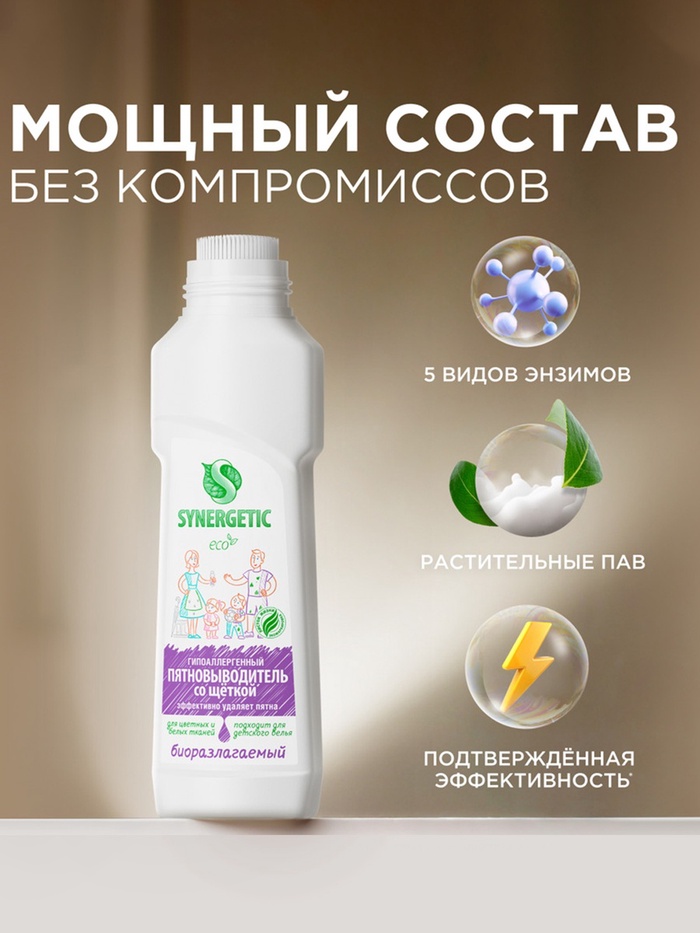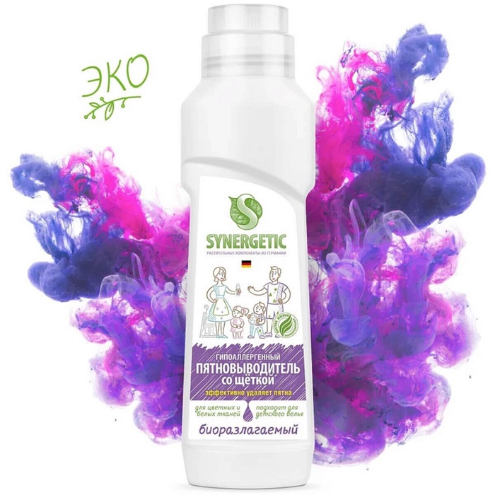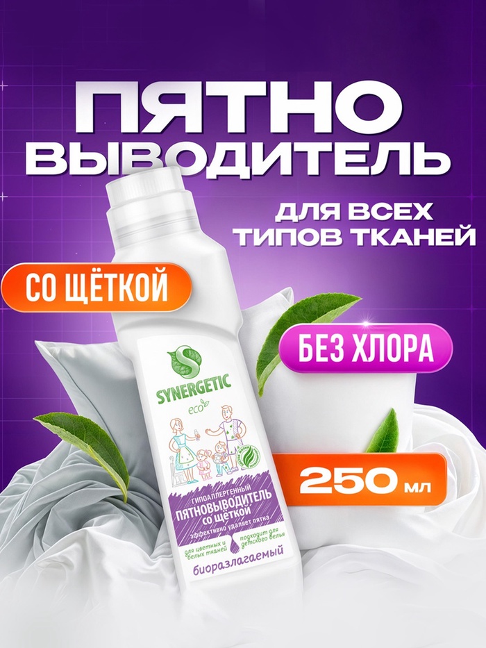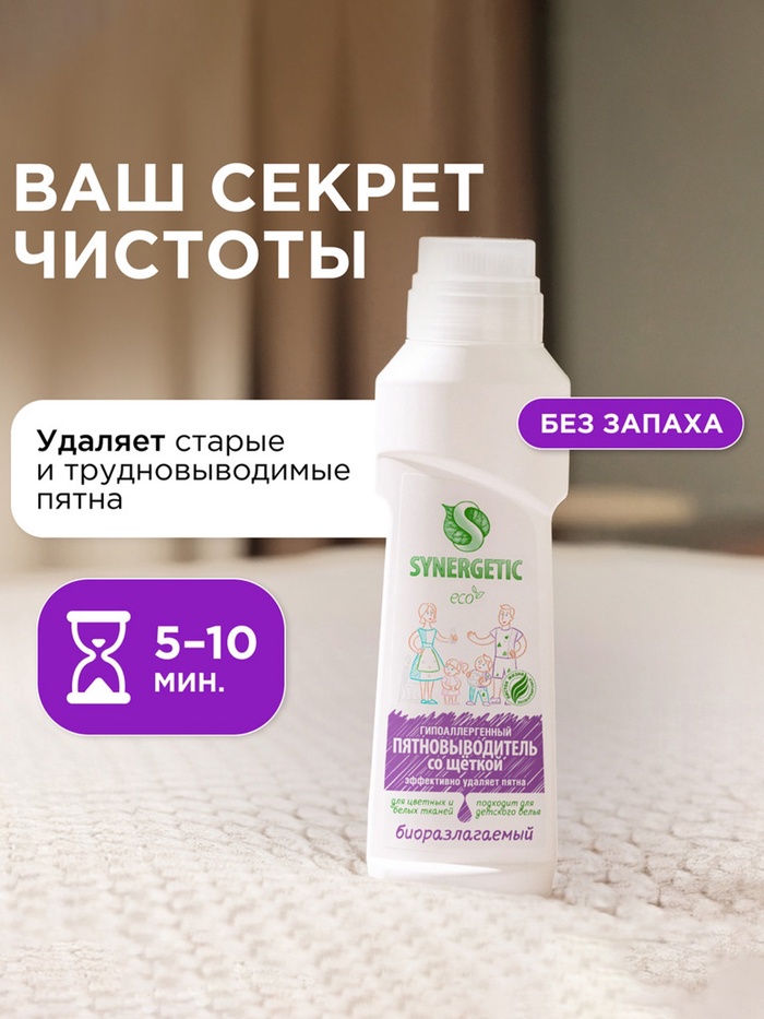 Пятновыводитель Synergetic, гель, для предварительной обработки пятен гипоаллергенный, биоразлагаемый,250 мл