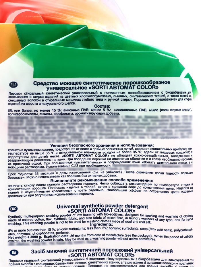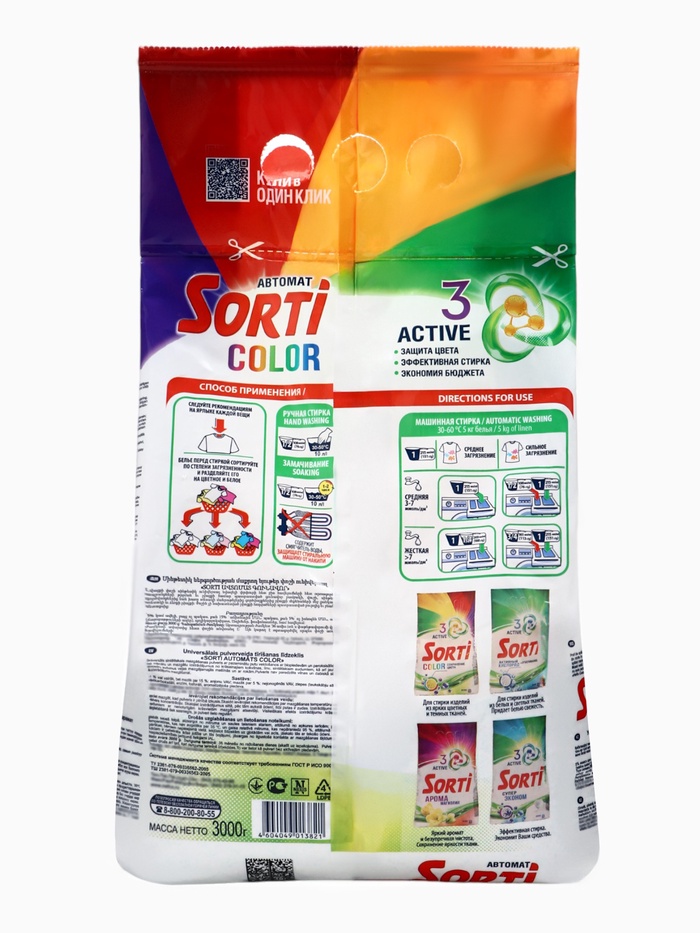 Порошок стиральный Sorti "Автомат Color", 3000 г