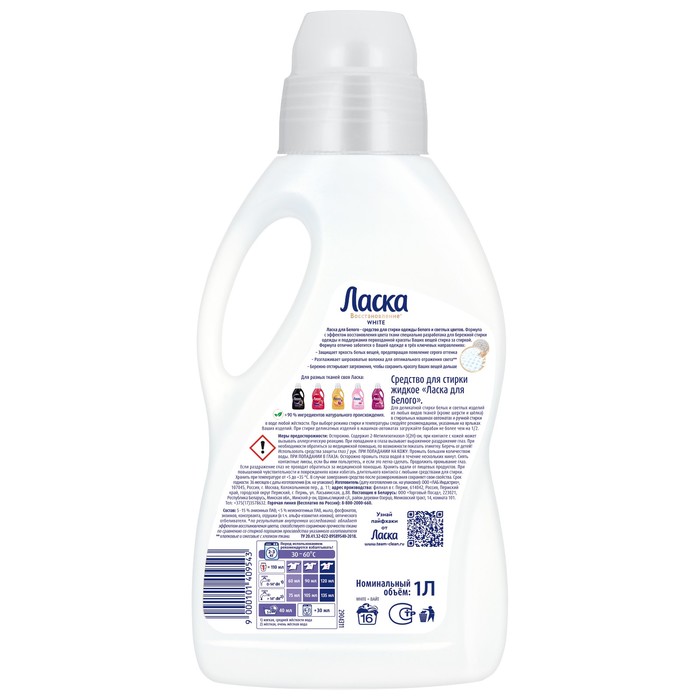 Жидкое средство для стирки «Ласка», гель, для светлых и белых тканей, 1 л