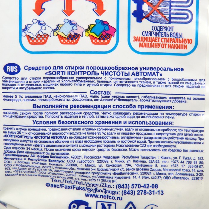 Стиральный порошок Sorti "Контроль чистоты", автомат универсальный 2,4 кг