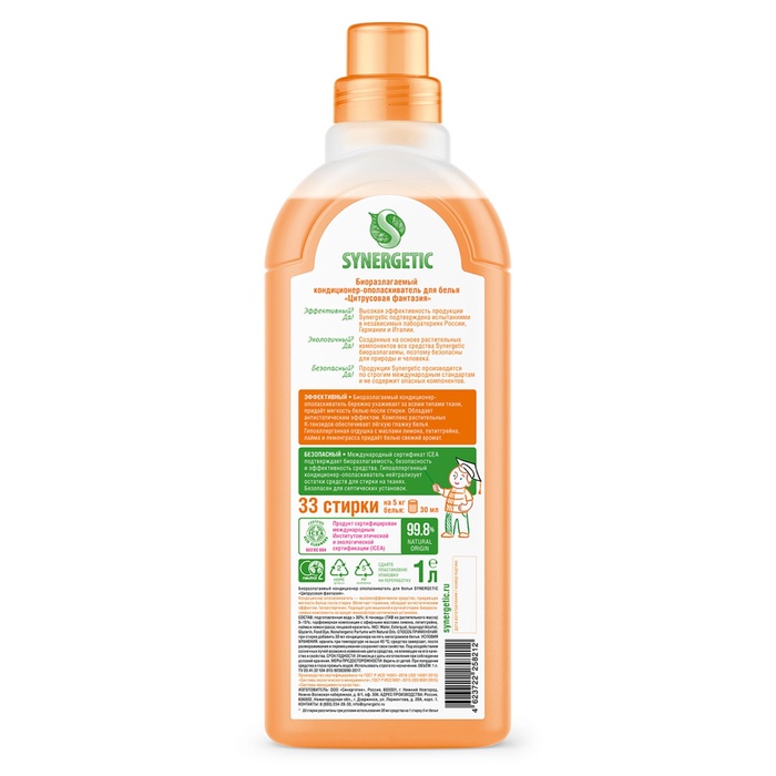 Кондиционер-ополаскиватель для белья Synergetic «Нежное прикосновение», детский, гипоаллергенный,5 л
