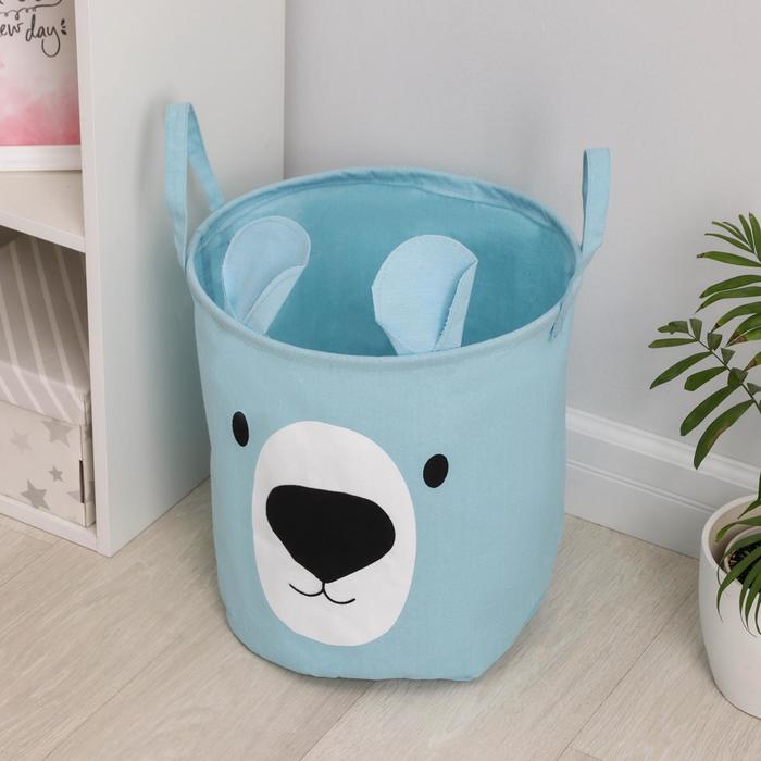 Корзина бельевая текстильная «Мишутка», 36×35 см, голубая