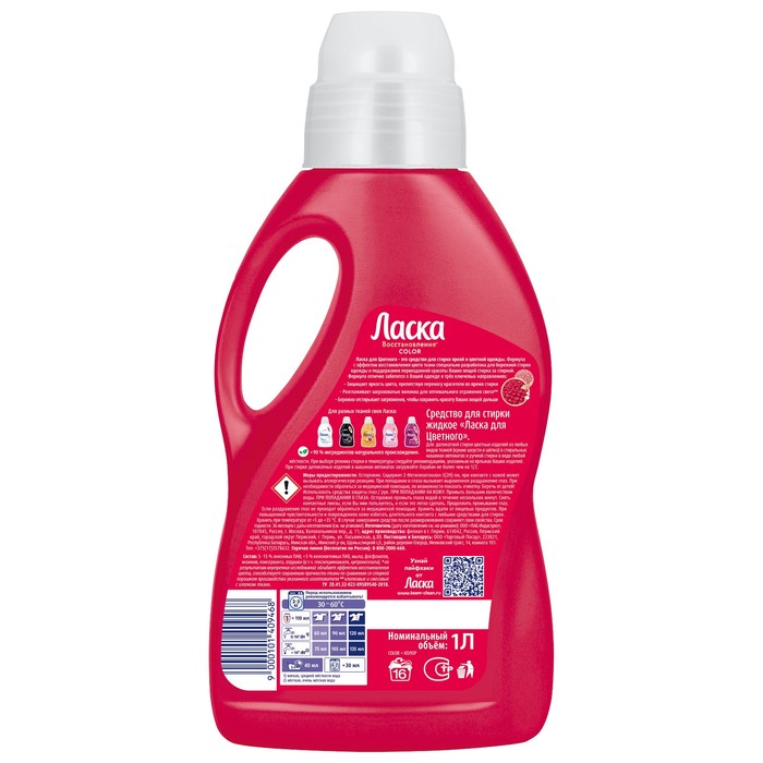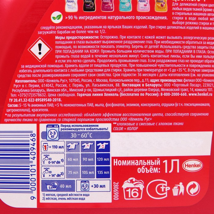 Жидкое средство для стирки Ласка «Сияние цвета», гель для разноцветных тканей, 1 л