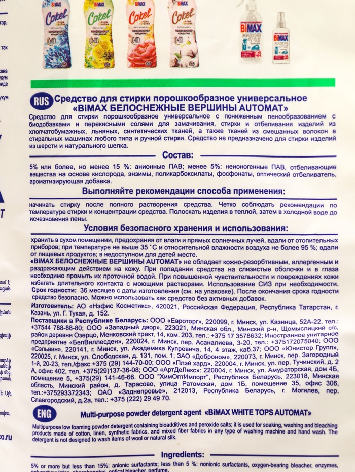 Порошок стиральный BiMax «Автомат Белоснежные вершины», 400 г