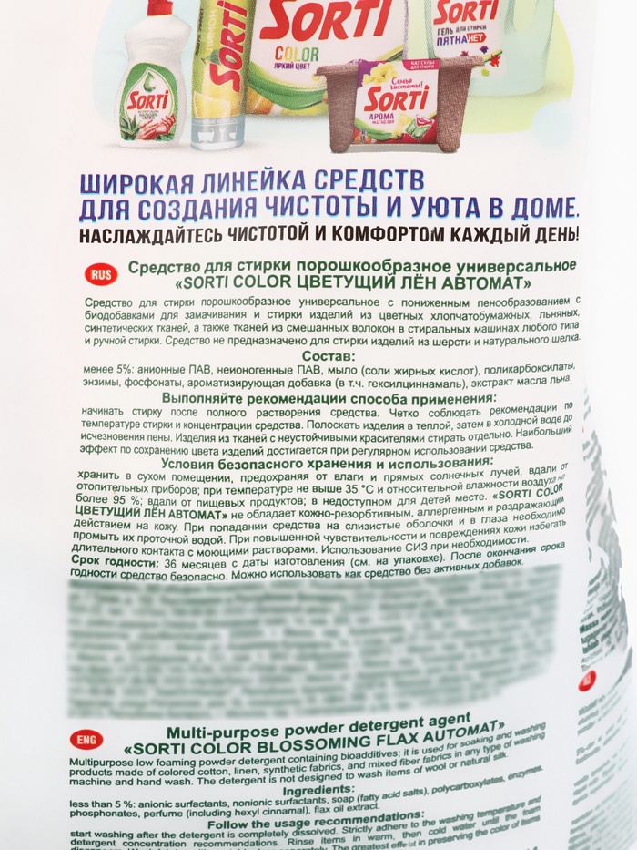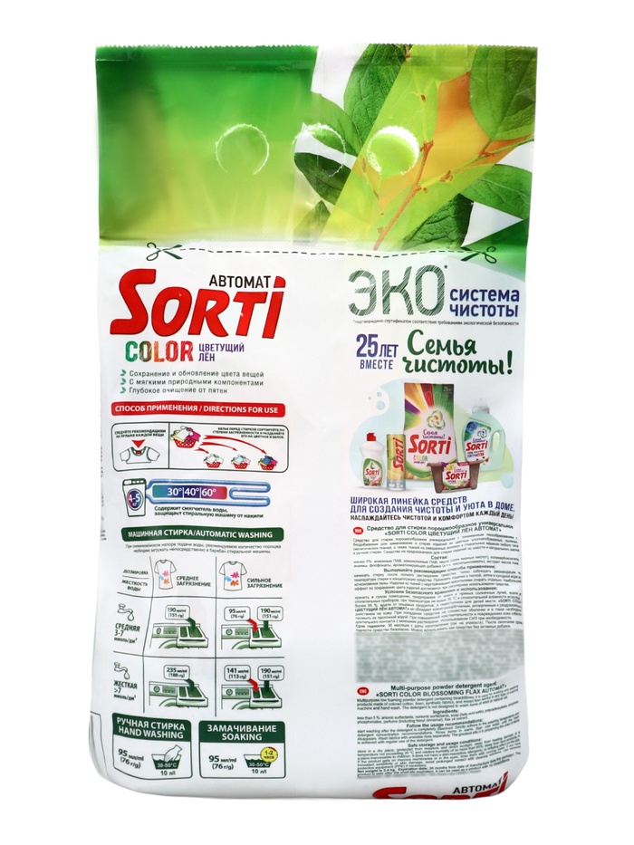 Стиральный порошок Sorti «Цветущий лен», автомат, 2.4 кг