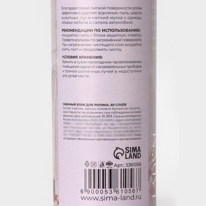 Ролик для одежды со сменными блоками LaDо́m, 8 шт. по 50 листов, эргономичная ручка, винтовая намотка